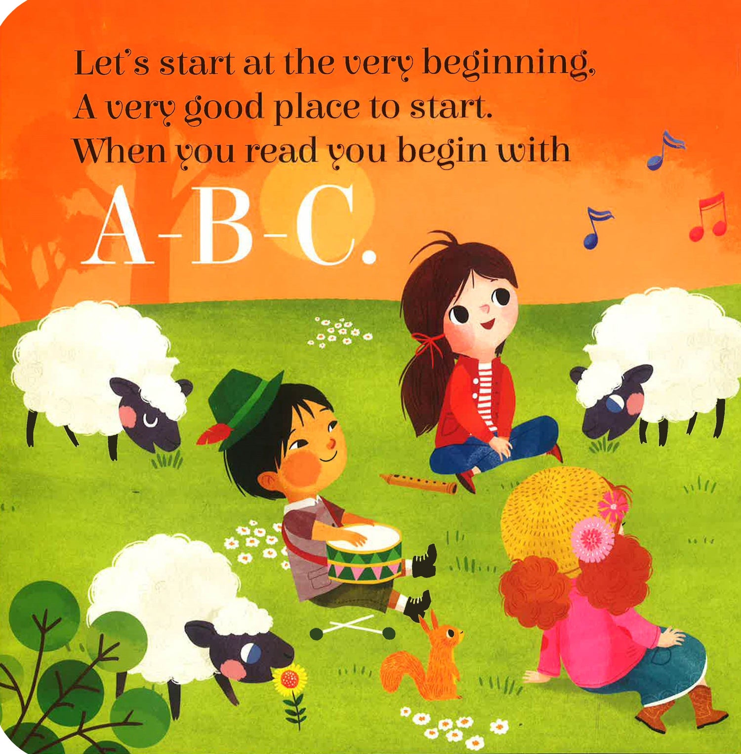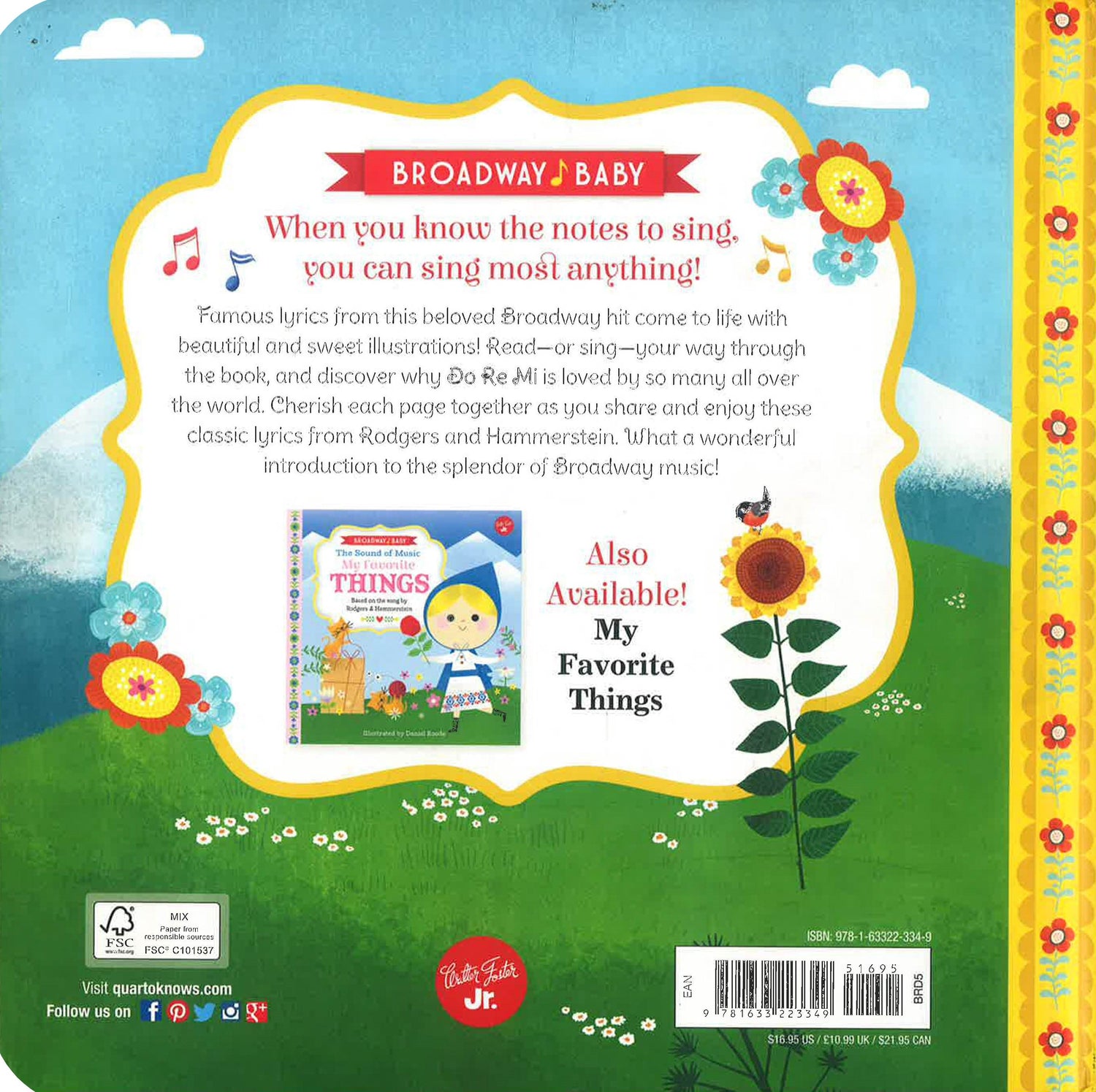 Presents the lyrics from "The Sound of Music" classic, with illustrations showing a group of children as they learn the words for the notes on the scale.