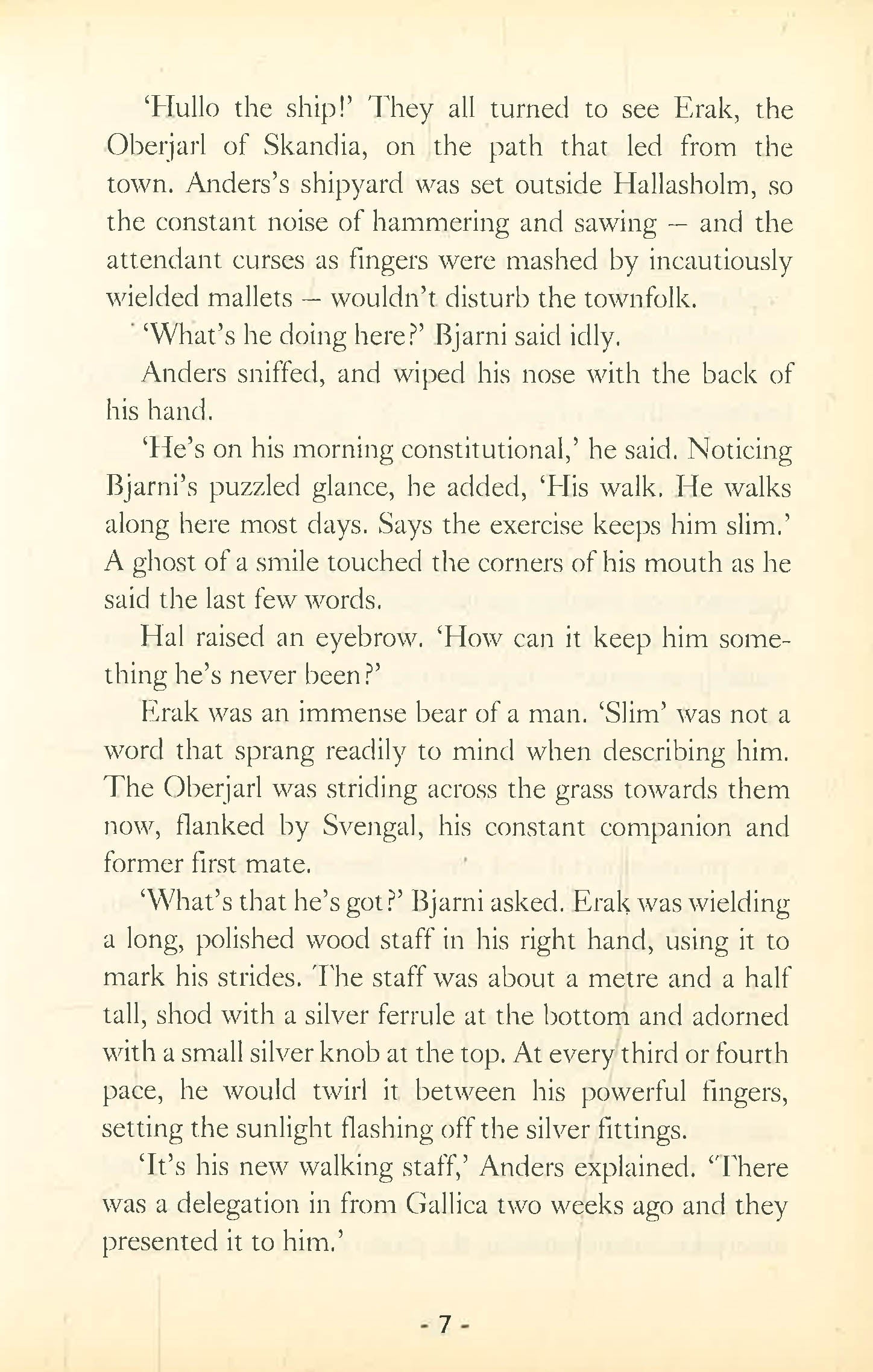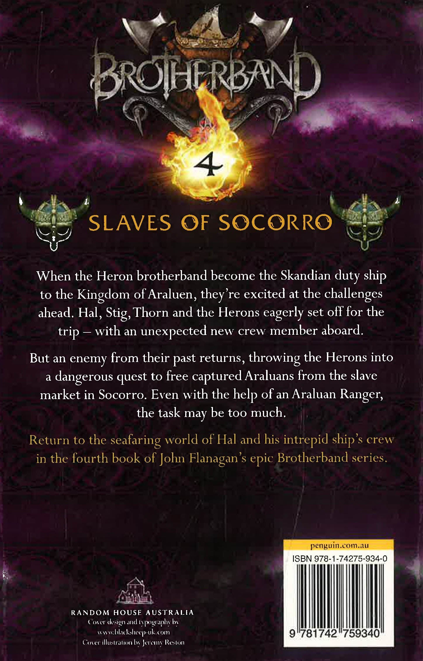 When the Heron brotherband become the Skandian duty ship to the Kingdom of Araluen, they're excited at the challenges ahead. Hal, Stig, Thorn and the Herons eagerly set off for the trip u with an unexpected new crew member aboard. But an enemy from their past returns, causing the Herons to be thrown into a dangerous new quest to free captured Araluans from the slave market in Socorro. Even with the help of an Araluan Ranger, the task may be too much.