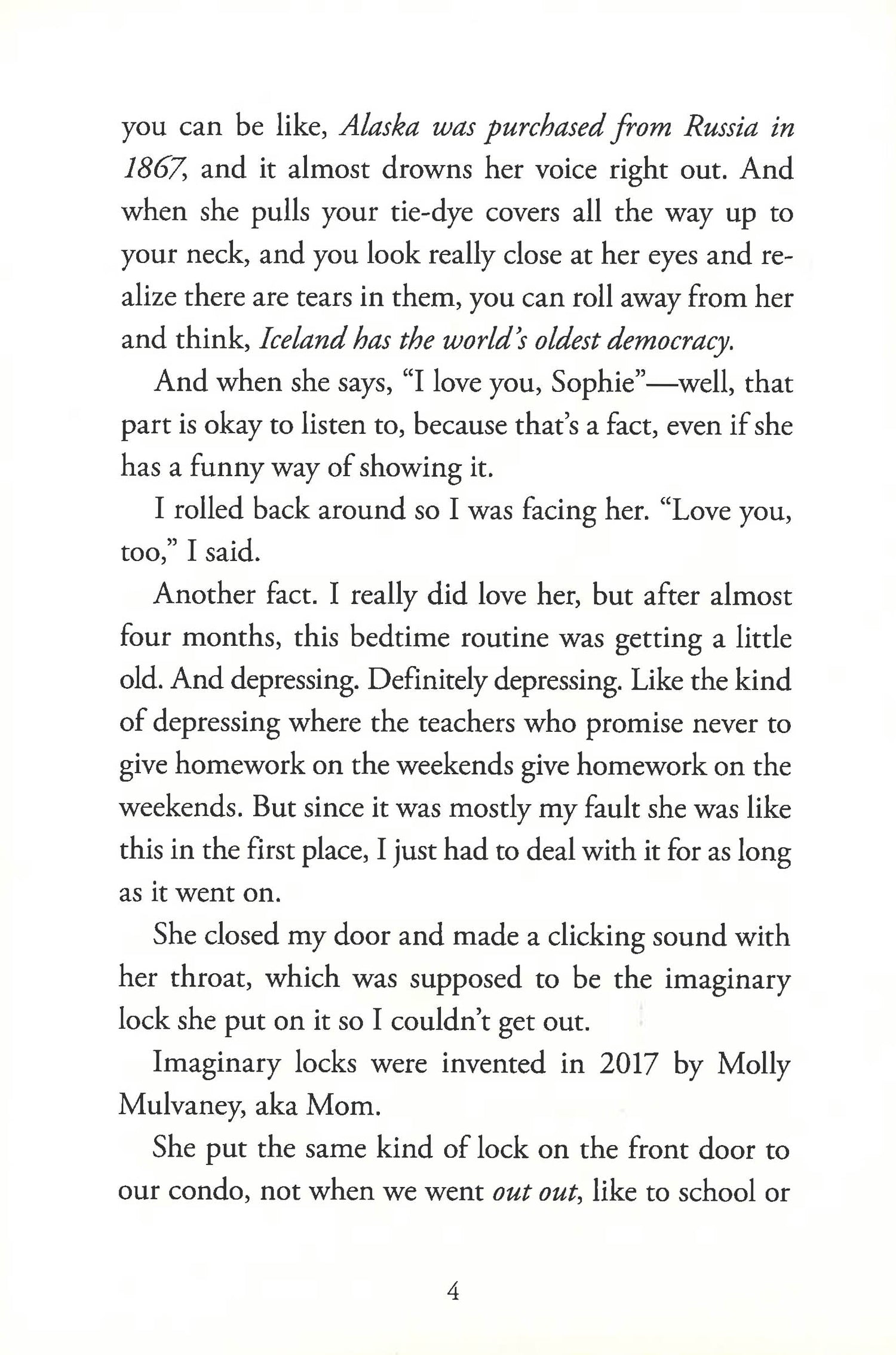 Twelve-year-old Sophie Mulvaney's world has been turned upside down. Mom lost her job at the TV station and broke up with Pratik, whom Sophie adored. Her teacher is making them do a special project about risk-taking, so Sophie gets roped into doing a triathlon. And to top it all off, she's started seeing bubbles above people's heads that tell her what these people are thinking. Seeing other people's thoughts seems like it should be cool, but it's actually just stressful. What does it mean that Pratik wishes she and Mom were with him to eat dinner? Is her best friend Kaya really going out with their other best friend, Rafael, whom Sophie also has a crush on? And can Sophie's mom ever go back to her old self? In this funny, heartwarming novel from Abby Cooper, BUBBLES shows readers that people are more than what they seem - or what they think.