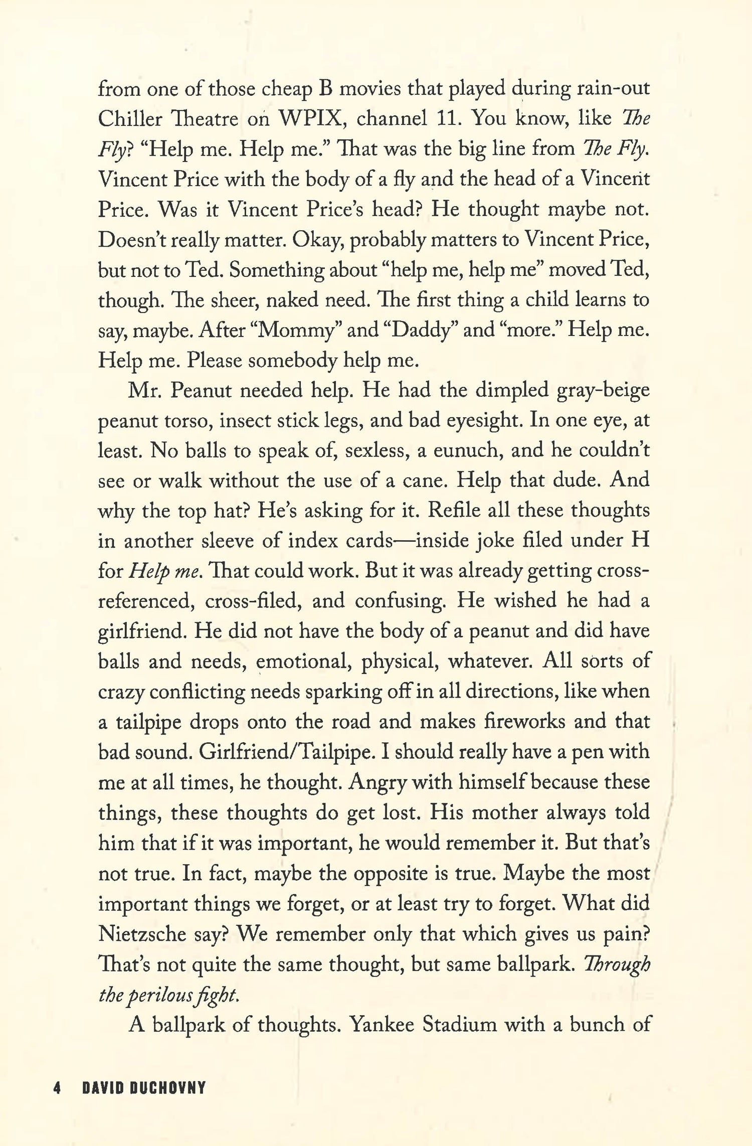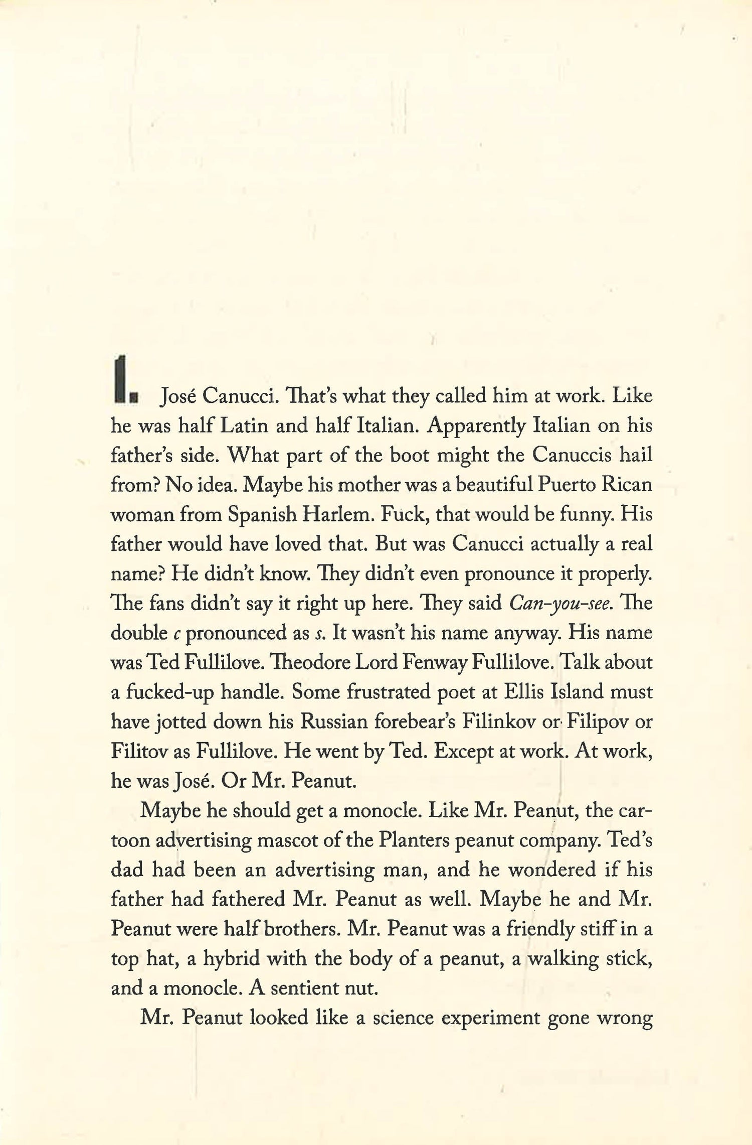 Ted Fullilove, aka Mr. Peanut, is not like other Ivy League grads. He shares an apartment with Goldberg, his beloved battery-operated fish, sleeps on a bed littered with yellow legal pads penned with what he hopes will be the next great American Novel, and spends the waning days of the Carter administration at Yankee Stadium, waxing poetic while slinging peanuts to pay the rent.