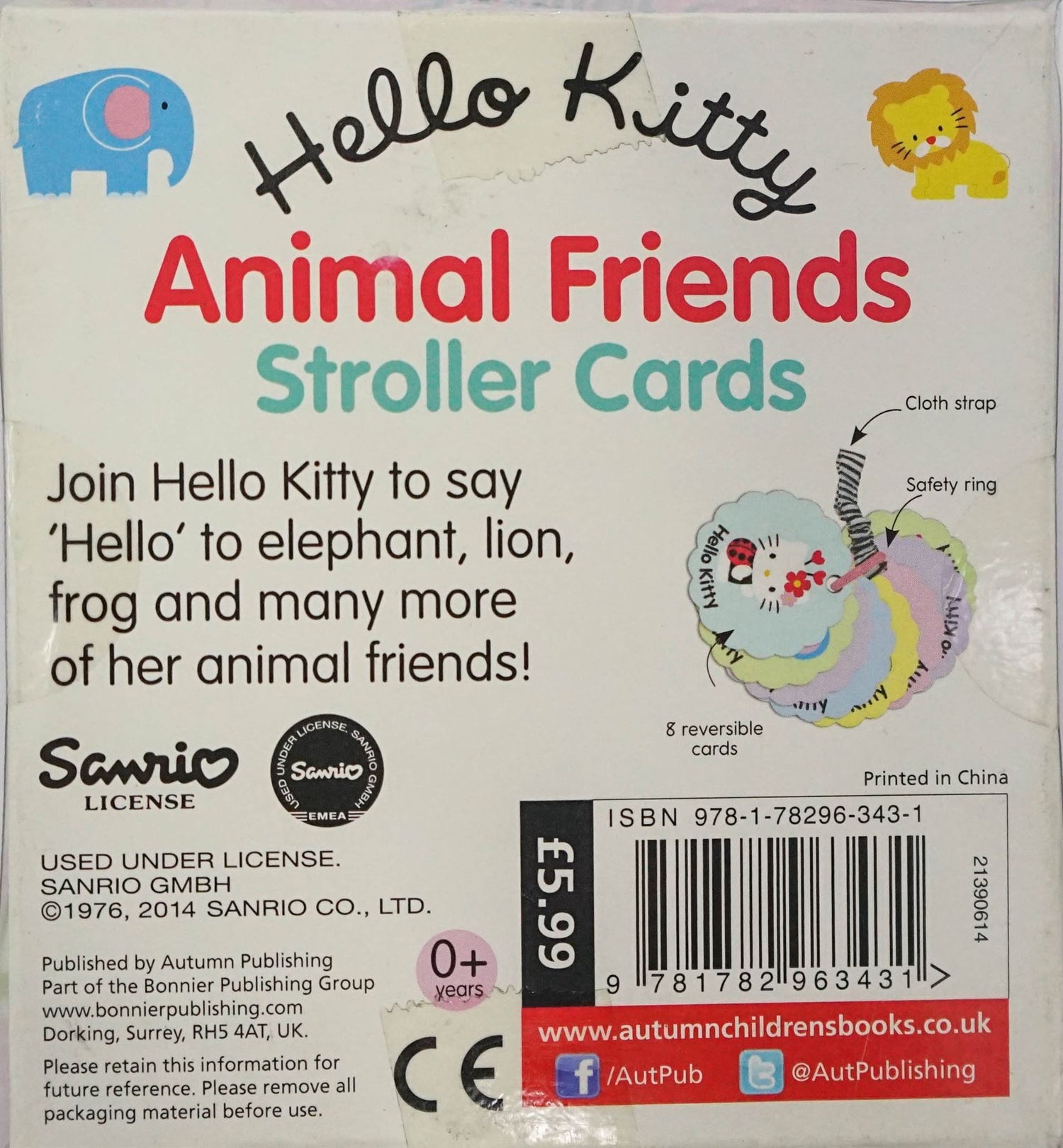 With cute, soft and engaging Hello Kitty illustrations, these Animal Friends stroller cards are a great way to keep babies entertained on the go. Join Hello Kitty and say Hello to elephant, lion, frog and many more! The hook-and-loop attachment with elastic fabric can be easily attached to a buggy, pram or car seat.