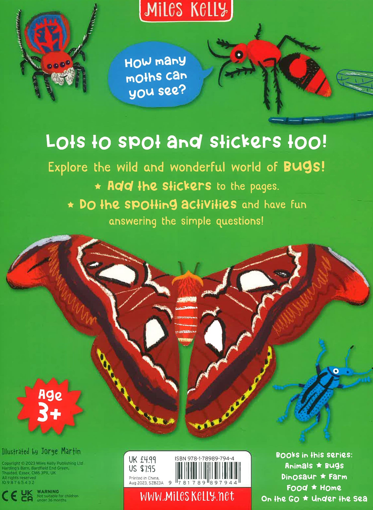 Bugs Sticker Book is a great, simple activity book packed with creepy crawlies from butterflies and beetles to bugs found in the rainforest or water. Your preschooler will enjoy finding the missing bug sticker for each page, and adding it to complete the bright, colourful scene.