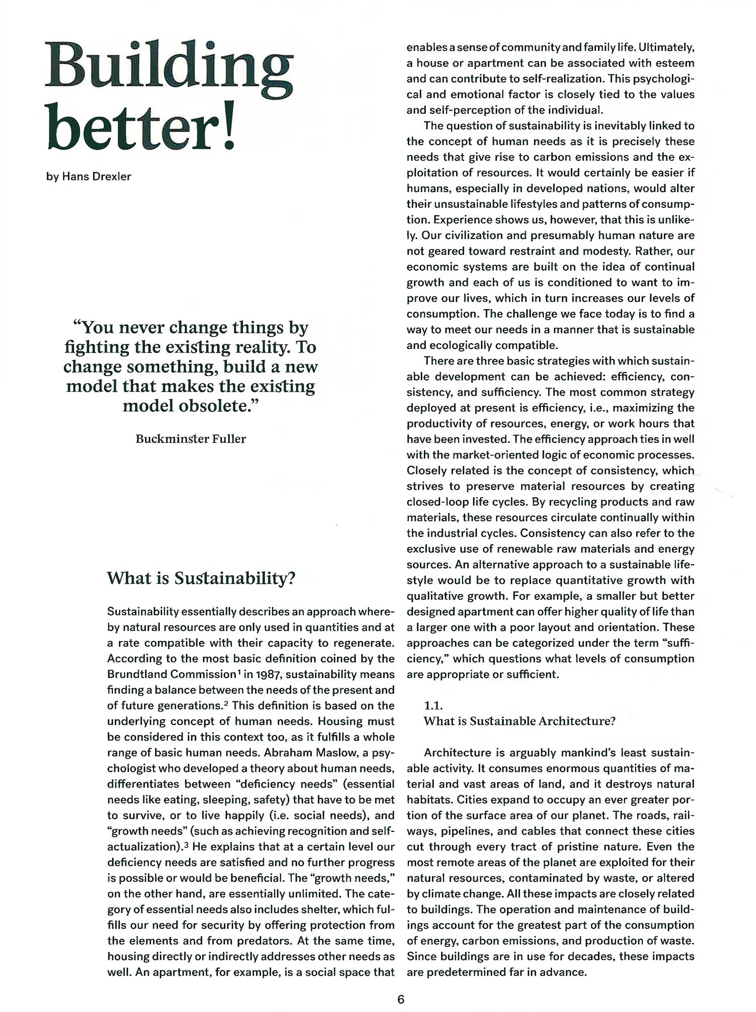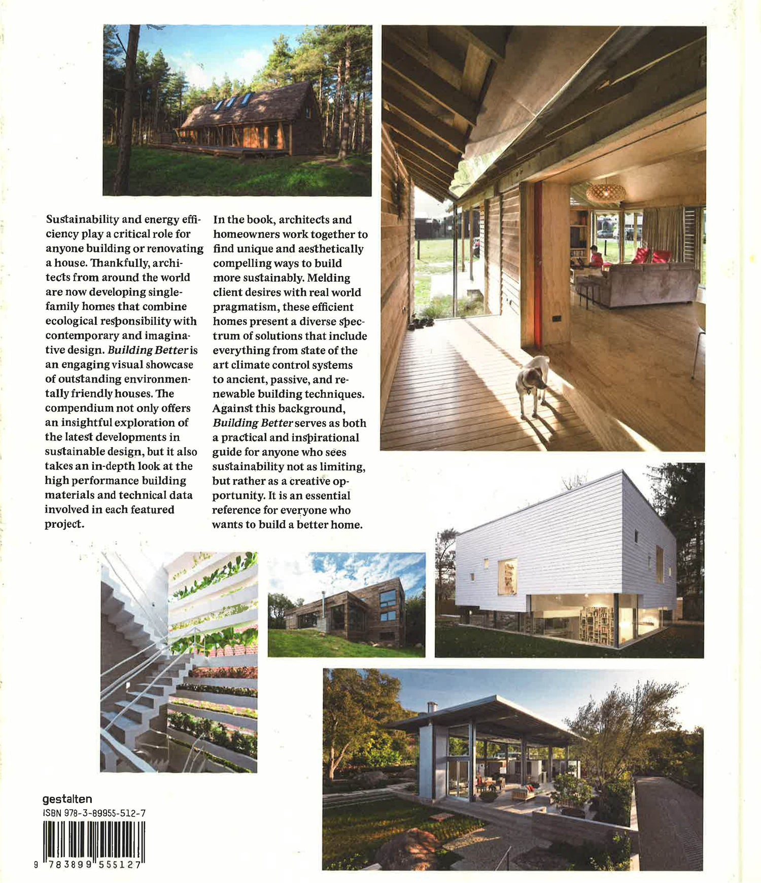 Sustainably built single-family homes don't have to be ugly. In this book, architects and homeowners share their perspectives on the interplay between ecology and contemporary architecture. For anyone who is in the process of building or renovating a home, sustainability is a critical issue --especially since energy is likely to remain costly for the foreseeable future. Choosing to use resources responsibly makes as much of a statement about a home as the selection of floor plans, building materials, or furniture Ideally, our homes should be sustainable and look good at the same time. Building Better showcases single-family homes from around the world whose architecture proves that sustainable and attractive are not contradictions. The book's selection of outstanding, top-quality work provides feasible examples for a new generation of homeowners with a discerning sense of style and environmental responsibility. The spectrum of featured projects ranges from energy efficient restoration and the construction of intelligent extensions to the planning and building of new low-energy or passive homes. The book introduces the latest building forms and materials as well as case studies examining the best division of space, architectural planning, and the use of innovative technologies to control and improve heating and air conditioning. Consequently, Building Better not only provides a striking overview of the topic of sustainable building, but also insightful information on details from technical data to blueprints In the book, both architects and homeowners have their say Families talk about their ideas, desires, motivations, and real experiences. Against this background, Building Better is both a practical and inspirational guide for anyone who sees sustainability not as limiting, but rather as a creative opportunity. As such, it is an essential reference for everyone who wants to build a better home.