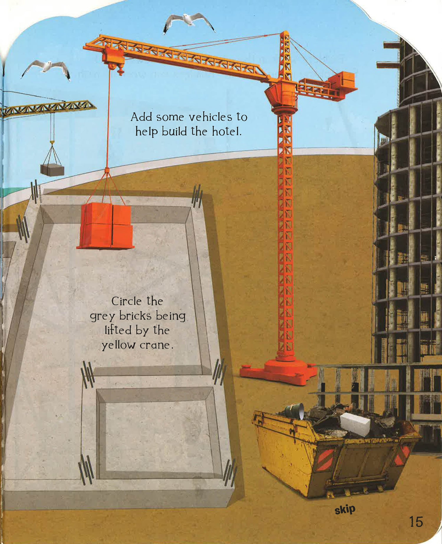 Children can create their own busy building site scenes in this lively book packed full of trucks, diggers, dump trucks and cranes. There are over 130 stickers to add to help the construction workers build a house, a new playground and a skyscraper – and to pull buildings down with a CRASH too!