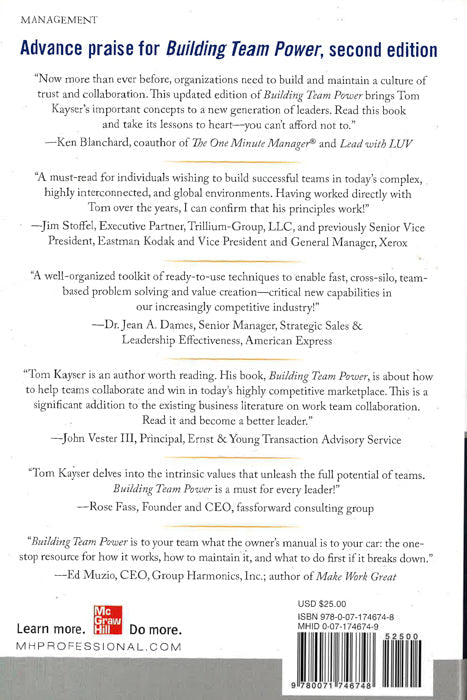"Now more than ever before, organizations need to build and maintain a culture of trust and collaboration. This updated edition of Building Team Power brings Tom Kayser's important concepts to a new generation of leaders. Read this book and take its lessons to heart-you can't afford not to."