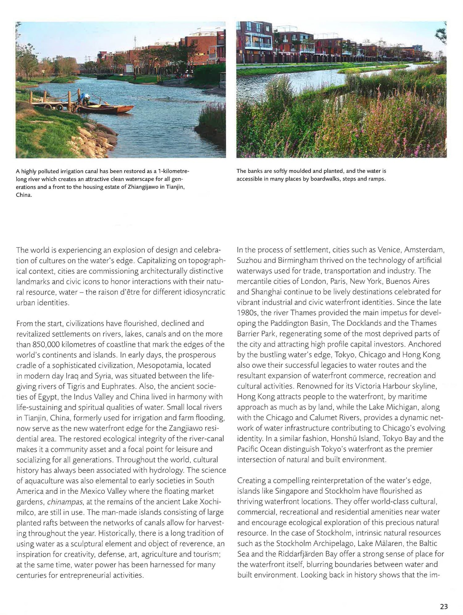 Water has been an important topic in architecture and urban planning for years. The revitalization of the waterfront has been a prevalent trend in cities around the world. On the other hand, architecture also had to respond to the threat of floods. The theme of Building with Water is the use of water in architecture. It presents buildings that explicitly refer to water in their design and form. It establishes a typology of building by the water: residential structures, recreation facilities, industry and infrastructure, buildings for culture and art. The various design parameters are explored in four essays. Subsequently, twenty-two international projects are presented, organized according to their locations by a river, a lake or the sea. The authors’ concern is not to show luxurious buildings in privileged locations but rather presenting projects that seriously grapple with the main criterion of the location―namely, water―in an ecologically sustainable way and respond to it with their design. Wasser ist seit Jahren ein wichtiges Thema in Architektur und Städtebau. «Building with Water» thematisiert die Verarbeitung von Wasser im architektonischen Entwurf; es werden Bauten vorgestellt, die sich in ihrer Gestaltung und Form ausdrücklich auf Wasser beziehen. Eine Typologie des Bauens am Wasser wird erstellt: Wohnbauten, Verkehrs- und Industriebauten, Bauten für Kultur und Freizeit. Ebenso werden einleitend klassische Beispiele des Bauens am/im/auf dem Wasser gezeigt, wie etwa Château de Chenonceaux an der Loire, Falling Water in Pennsylvania von Frank Lloyd Wright oder das Salk Institute in La Jolla,Kalifornien, von Louis I. Kahn. Geordnet nach ihren Standorten am Fluss, See oder Meer, werden dann etwa 20 internationale Projekte vorgestellt. Es geht den Autoren nicht darum, luxuriöse Bauten an privilegierten Plätzen zu zeigen, sondern Projekte darzustellen, deren Entwurf sich ernsthaft und ökologisch verträglich mit dem Hauptkriterium des Standortes – nämlich Wasser – auseinandersetzt und sich gestalterisch darauf bezieht