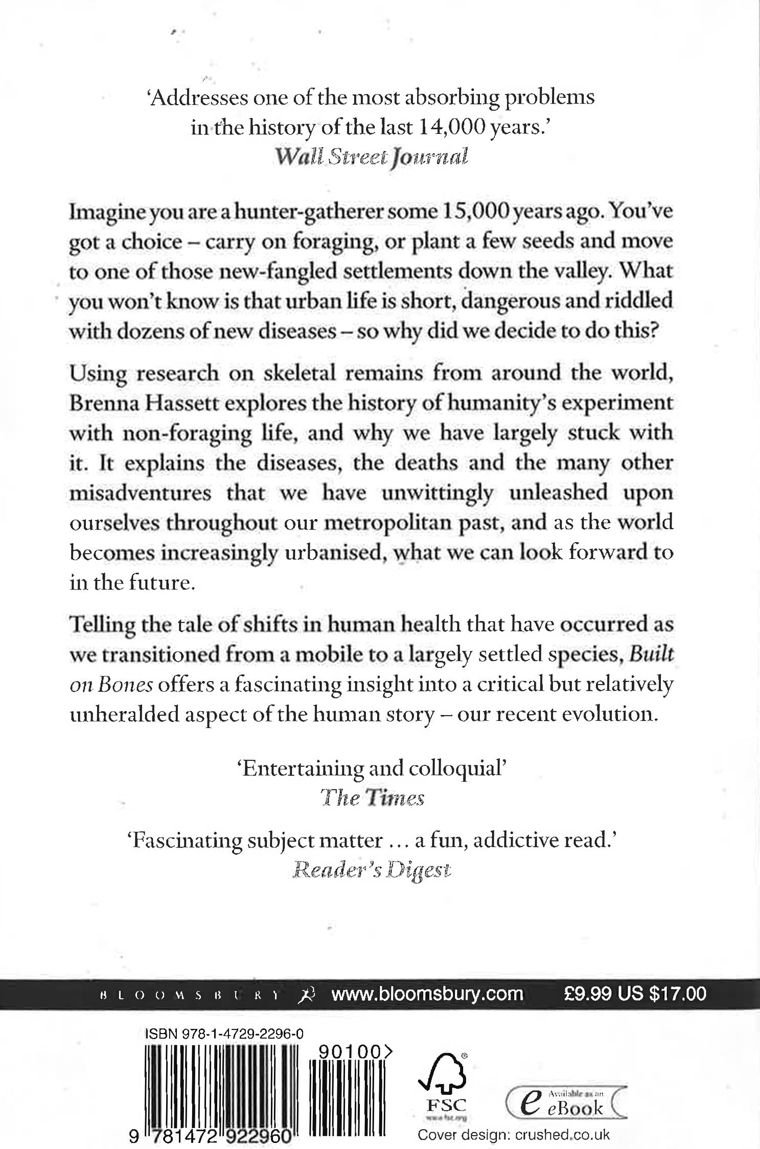 Why would anyone choose this? This is one of the many intriguing questions tackled by Brenna Hassett in Built on Bones. Using research on skeletal remains from around the world, this book explores the history of humanity's experiment with the metropolis, and looks at why our ancestors chose city life, and why they have largely stuck to it. It explains the diseases, the deaths and the many other misadventures that we have unwittingly unleashed upon ourselves throughout the metropolitan past, and as the world becomes increasingly urbanised, what we can look forward to in the future.