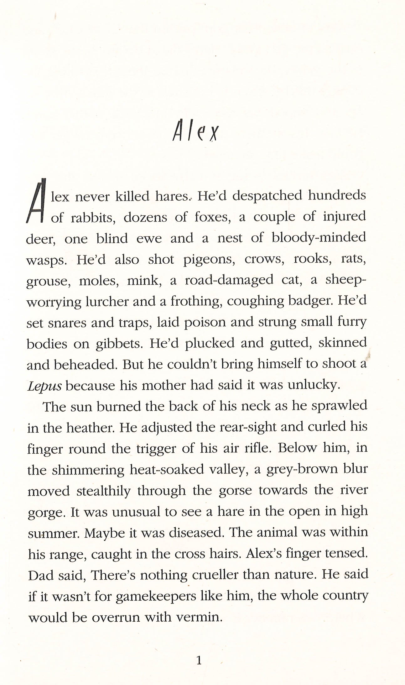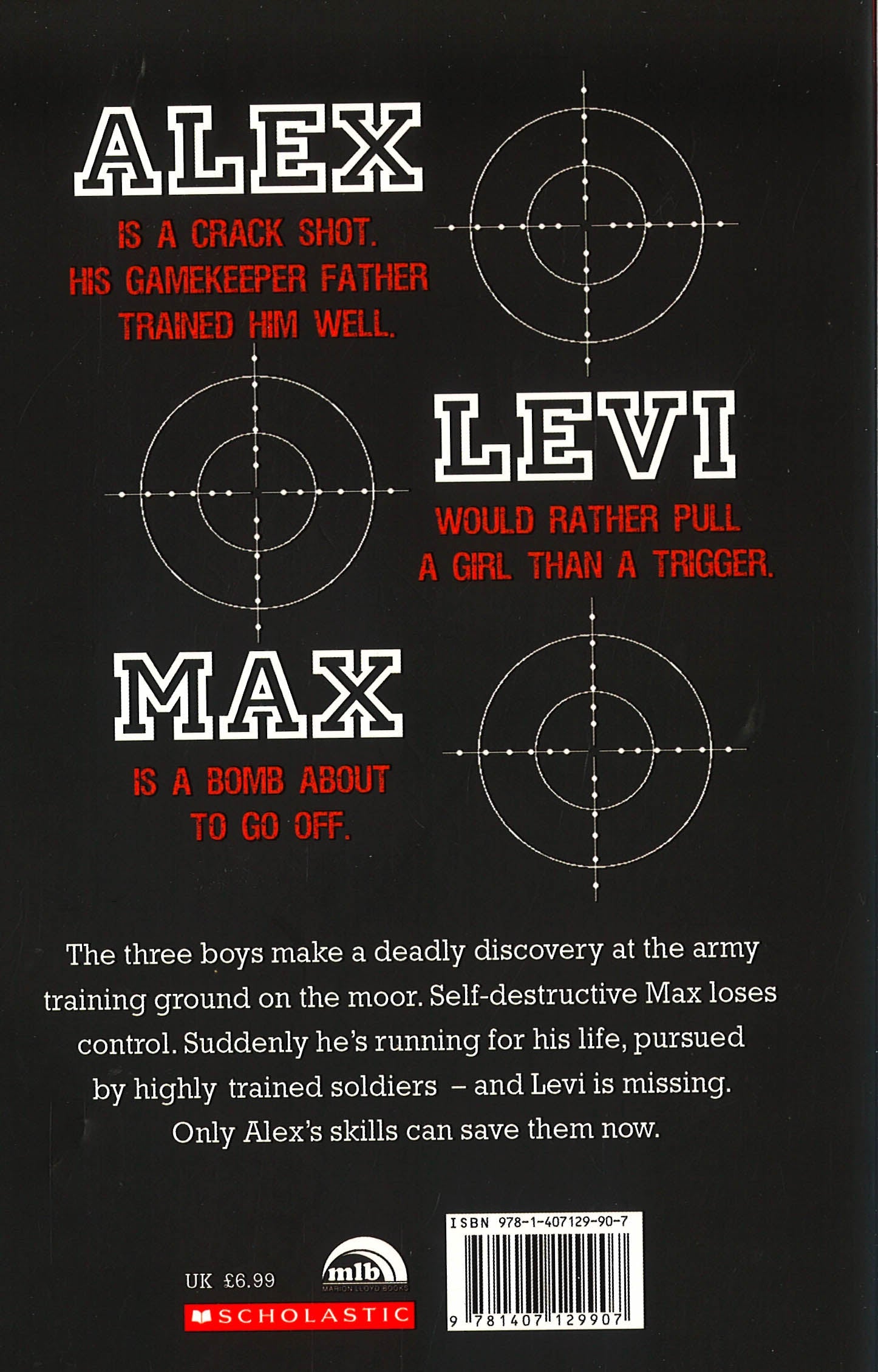 An electrifyingly dark teen thriller from the author of BEAST and QUARRY. Alex, Levi and Max follow the young soldiers from the local army camp on the moor. But harmless rivalry develops into something far more incendiary. When the boys discover a cache of buried weapons near the training grounds, deadly forces are brought into play.