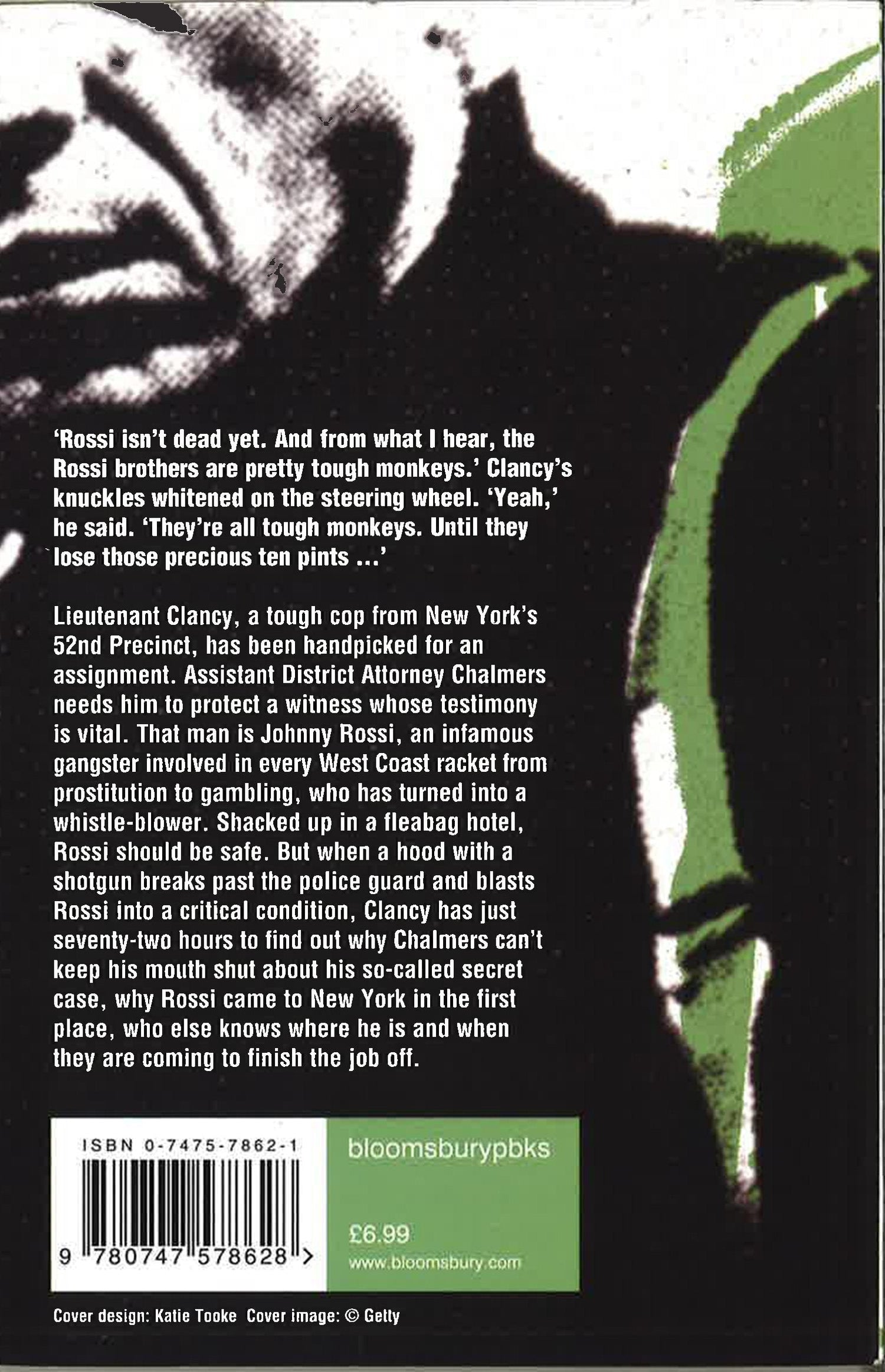 Rossi isn't dead yet. And from what I hear, the Rossi brothers are pretty tough monkeys.' Clancy's knuckles whitened on the steering wheel. 'Yeah,' he said. 'They're all tough monkeys. Until they lose those precious ten pints...' Lieutenant Clancy, a tough cop from New York's 52nd Precinct, has been handpicked for an assignment. Assistant District Attorney Chalmers needs him to protect a witness whose testimony is vital. That man is Johnny Rossi, an infamous gangster involved in every West Coast racket from prostitution to gambling, who has turned into a whistle-blower. Shacked up in a fleabag hotel, Rossi should be safe. But when a hood with a shotgun breaks past the police guard and blasts Rossi into a critical condition, Clancy has just seventy-two hours to find out why Chalmers can't keep his mouth shut about his so-called secret case, why Rossi came to New York in the first place, who else knows where he is and when they are coming to finish the job off.