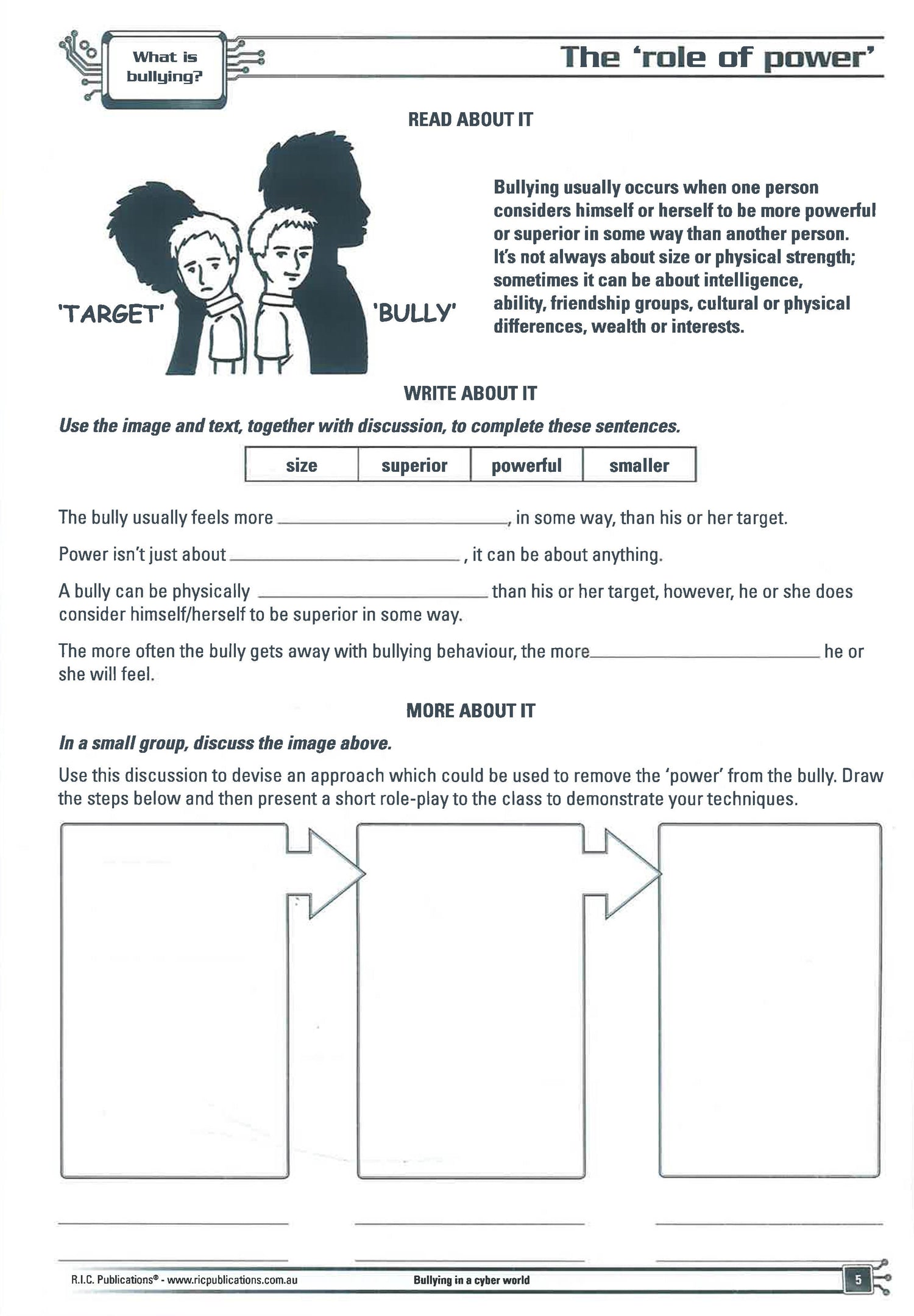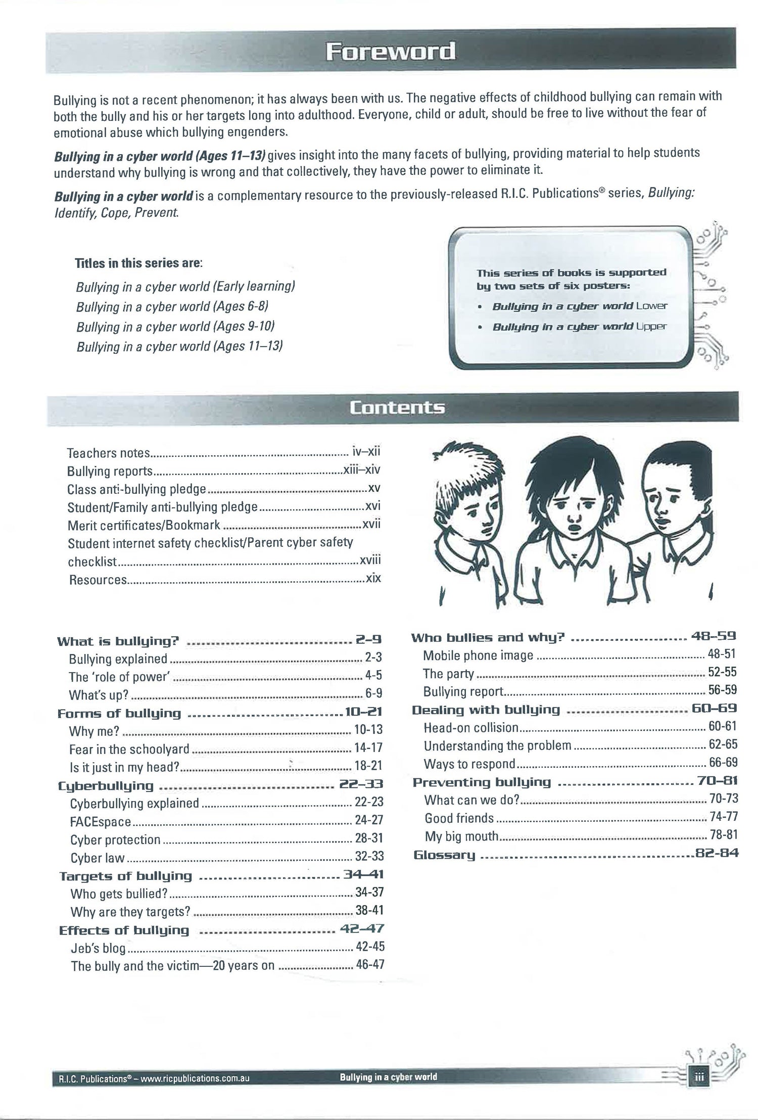 This teacher resource covers the following – what is bullying?, forms of bullying, cyber bullying, targets of bullying, effects of bullying, who bullies and why?, dealing with bullying, and preventing bullying. Bullying in a Cyber World can be used to supplement your school’s anti-bullying policy or in conjunction with its values program.