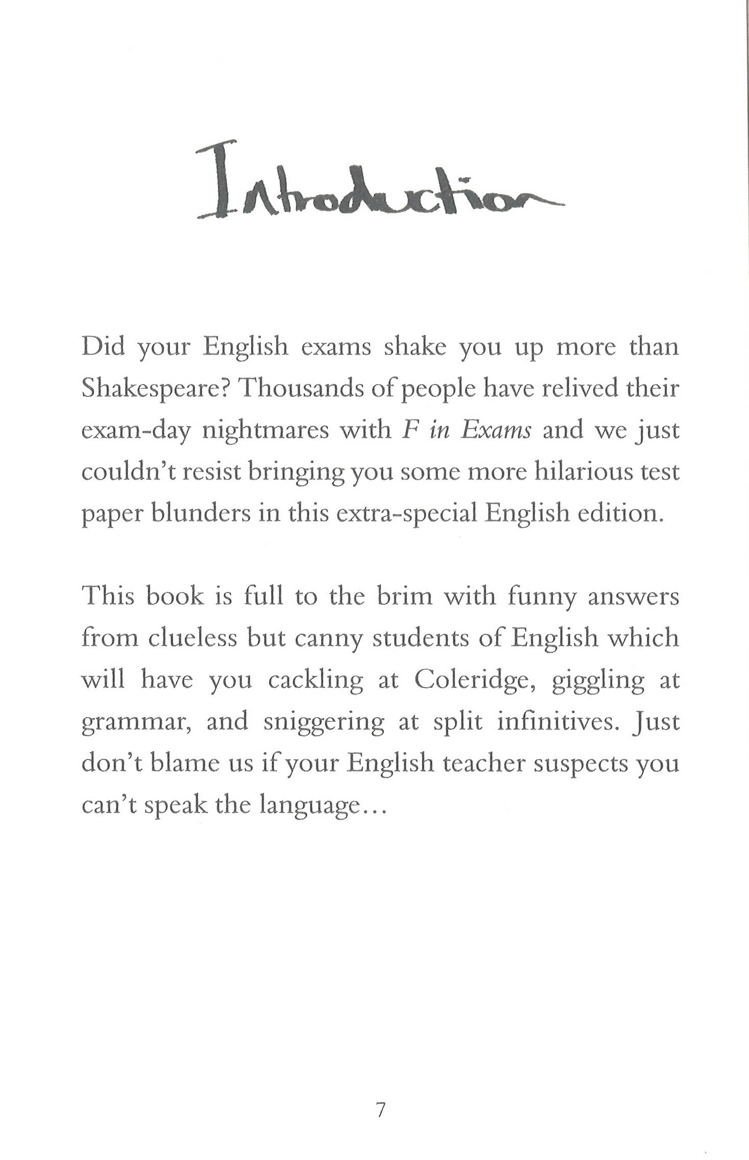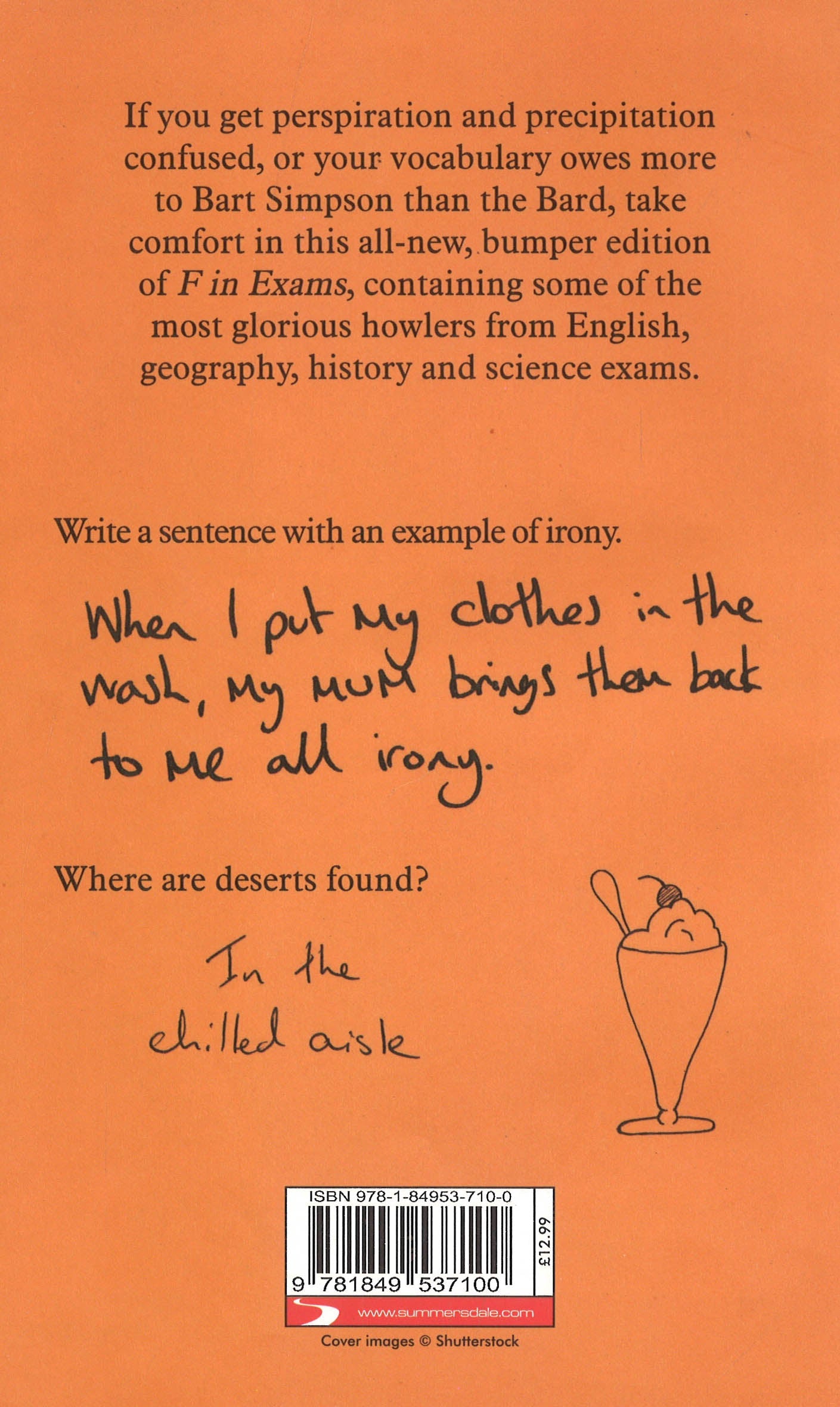 One thing you will not have had the opportunity to enjoy, though, is some of the outrageous howlers given as answers by your classmates. Containing some of the funniest and downright bizarre answers from English, geography, history and science exams, F in Exams does just that!