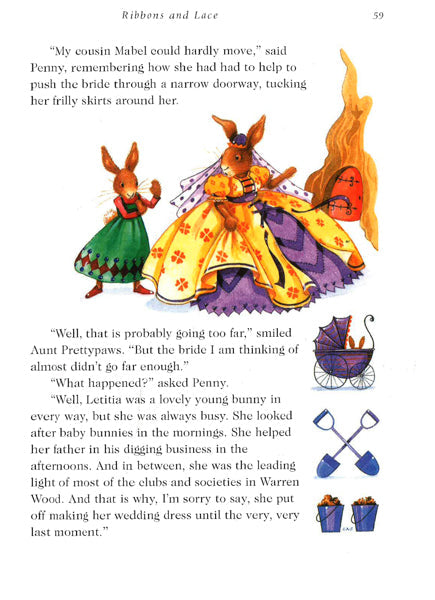 In this charmingly illustrated collection, twelve members of one rabbit family tell different stories that will make your ears wiggle, and if you look carefully you might uncover a carrot or two concealed on every page.When there's snow outside, and all the sensible bunnies are snuggled up in their burrows, they never feel lonely, because bunnies have very big families, and they all have a lot to say...In this charming collection, twelve members of one rabbit family - everyone from the tiniest baby bunny to the oldest great-great-great-grandfather - tell stories that will make your ears wiggle! You can read Great-Uncle Otto's Tale of the Big Bad Bunny, Cousin Hoppity's Tale of the Best Birthday, Baby Honeybun's Tale of the Talking Toy, and many more. Children will love the beautifully detailed artwork - and if you look very carefully, you might uncover a carrot or two concealed on every page. You don't often see a bunny by herself. That is because rabbits like nothing better than being together, huddled up in their warm burrows as one big, happy family. Of course, those burrows can be pretty noisy places, with everyone trying to talk at the same time. Bunnies love to tell stories, and you can read some of them in this book. Do you know what happens when a rabbit eats too much fudge? Or gets too friendly with a fox? Or tries to make a wedding dress at the very last minute? Read this collection of bunny tales and you will soon find out...