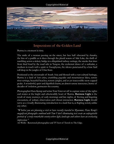 Burmese Light: Impressions of the Golden Land (Burma - Myanmar) is an evocative visual journey into the country currently known as the mysterious land behind the Bamboo Curtain. Stunning images by award-winning photographer Hans Kemp, paired with an insightful text by respected author Tom Vater, reveal this fascinating country as it emerges from a long period of involuntarily isolation. An illuminating collection of words and images that capture the essence of Burma, from the religious and the spiritual, to the cultural and social diversity that exist within this 'Golden Land'.