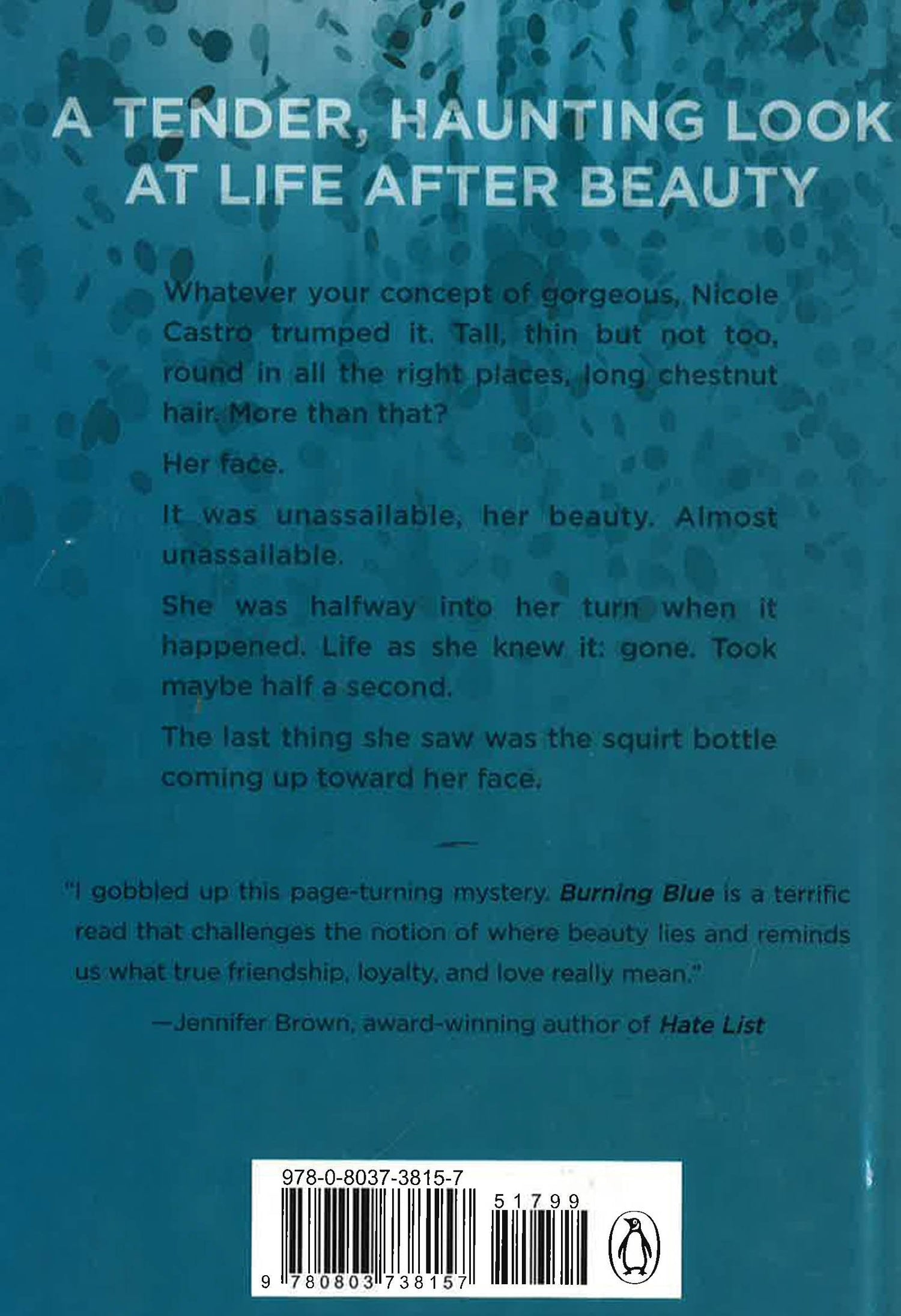 When Nicole Castro, the most beautiful girl in her wealthy New Jersey high school, is splashed with acid on the left side of her perfect face, the whole world takes notice. But quiet loner Jay Nazarro does more than that--he decides to find out who did it. Jay understands how it feels to be treated like a freak, and he also has a secret: He's a brilliant hacker. But the deeper he digs, the more danger he's in--and the more he falls for Nicole. Too bad everyone is turning into a suspect, including Nicole herself.