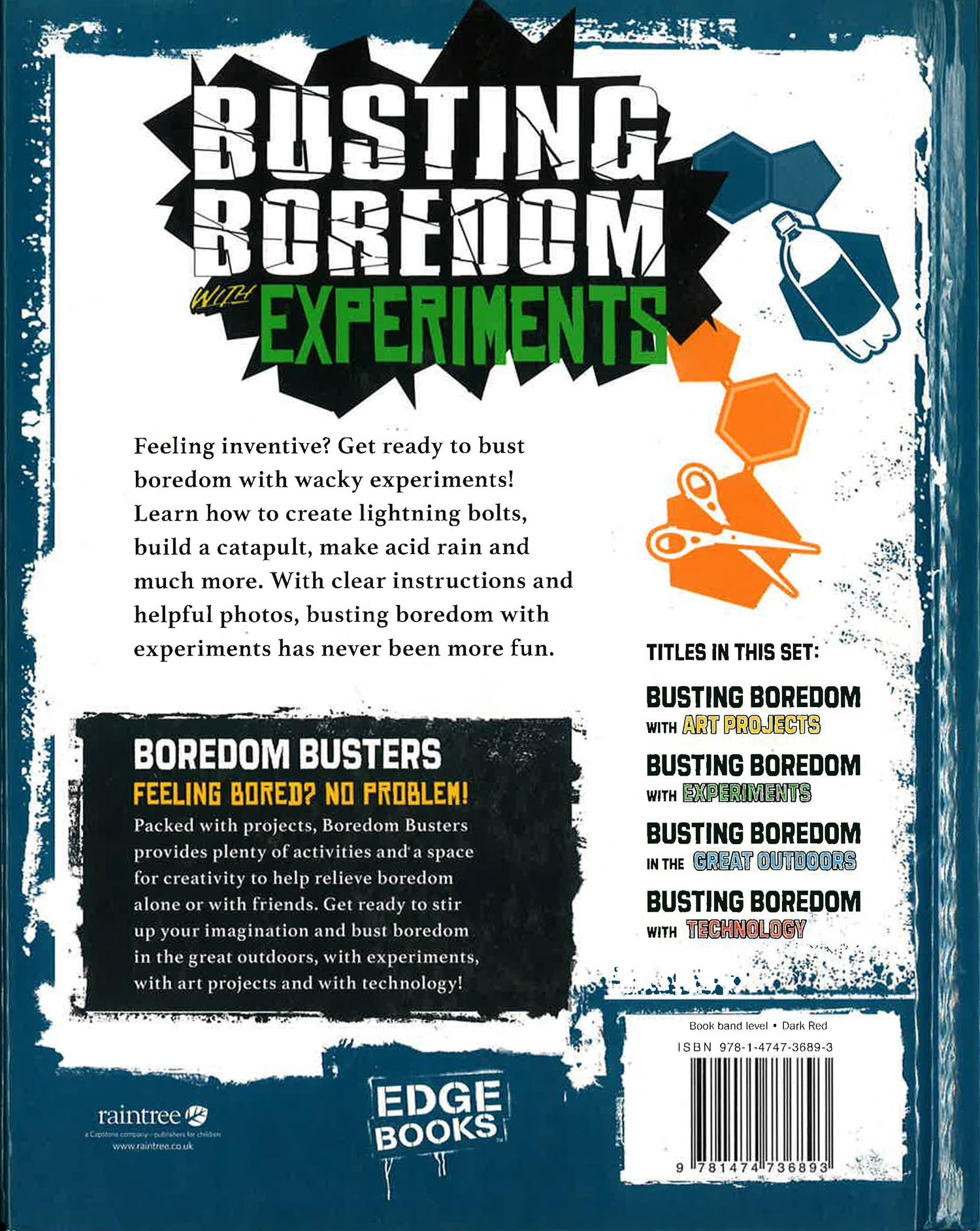 Feeling inventive? Get ready to bust boredom with simple experiments! Learn how to create lightning bolts, build a catapult and much more. With clear instructions and helpful photos, busting boredom with experiments has never been more fun.