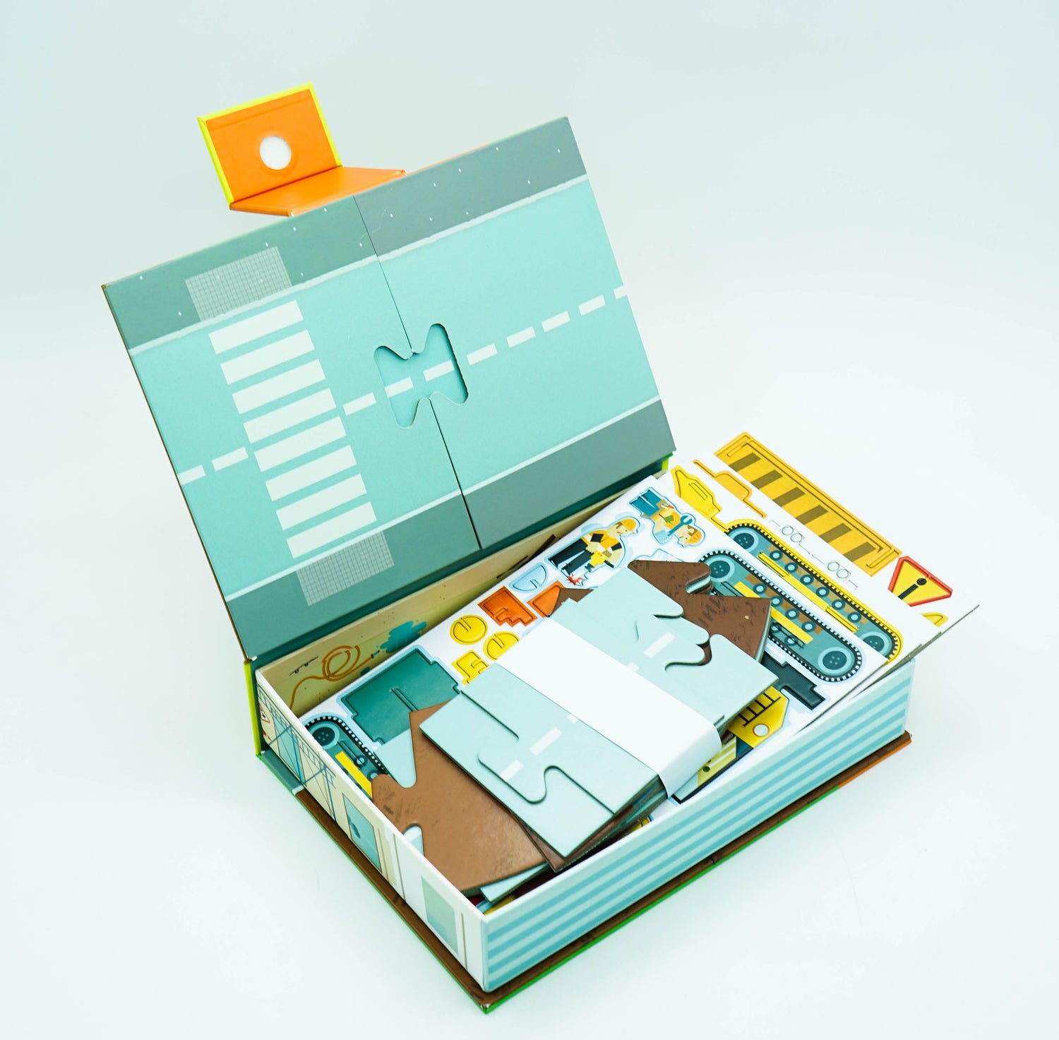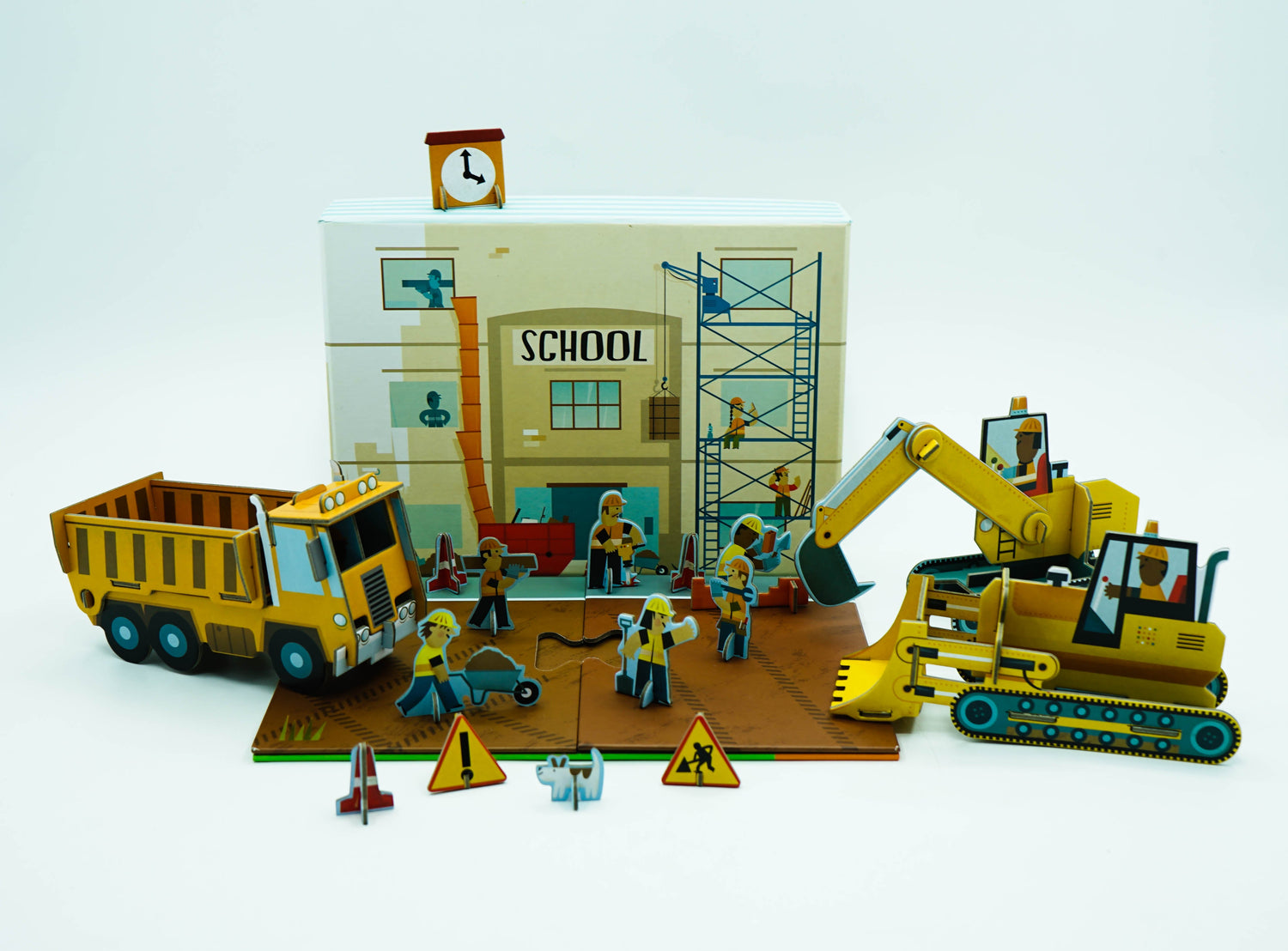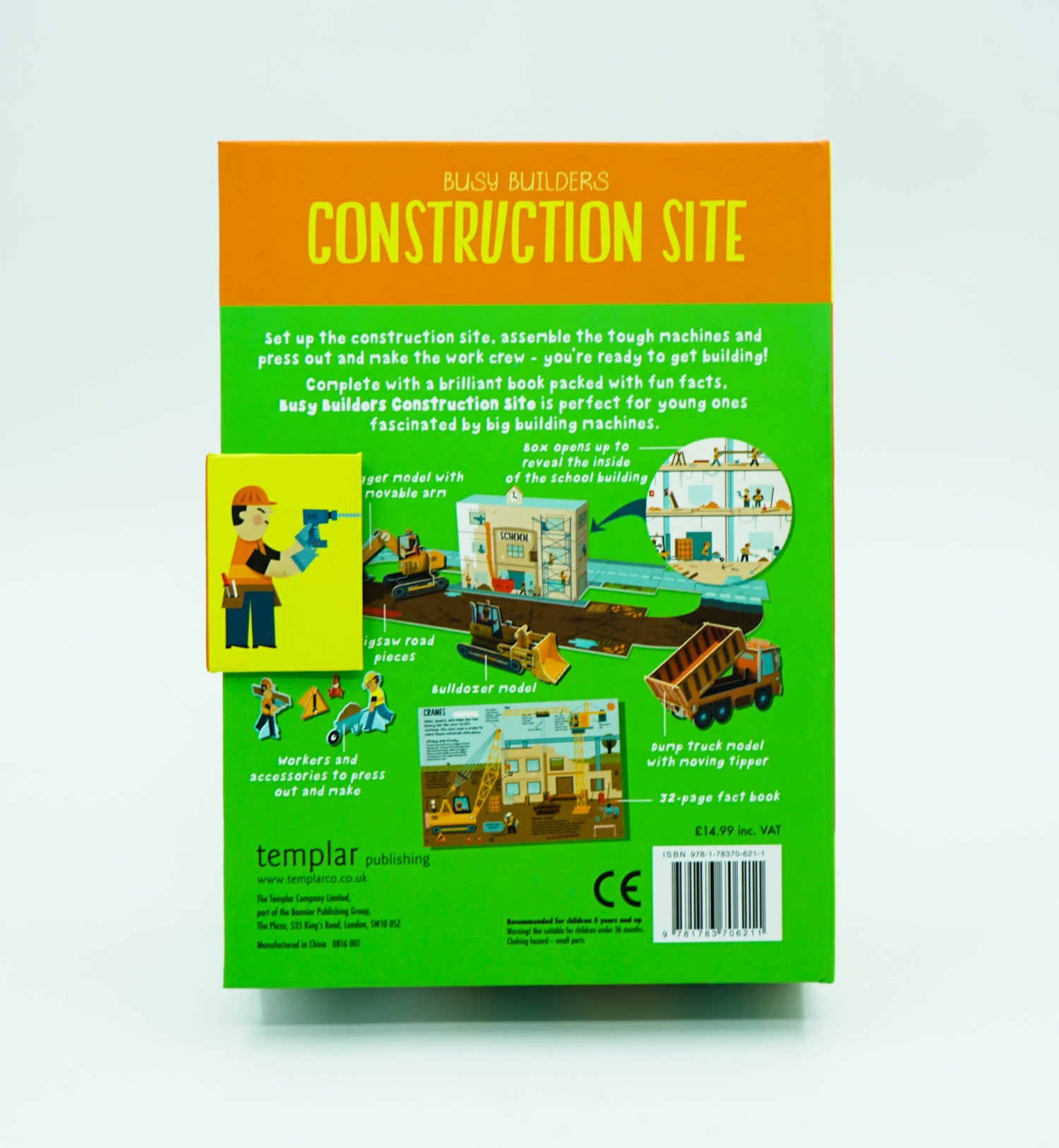 Construction site shows how an architect's vision is brought to life. A half-made building forms the model centrepiece, with easy-to-make model vehicles, slot-together pathways and other accessories to add to complete the scene. Includes a 32-page book with facts about the different machinery used, as well as the stages involved in erecting a building. An ideal activity package for budding builders everywhere. *This book may have a minor shelf wear.