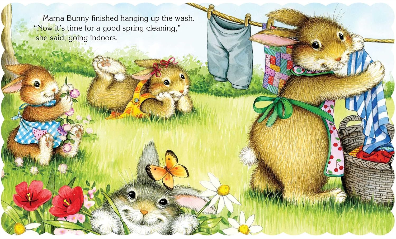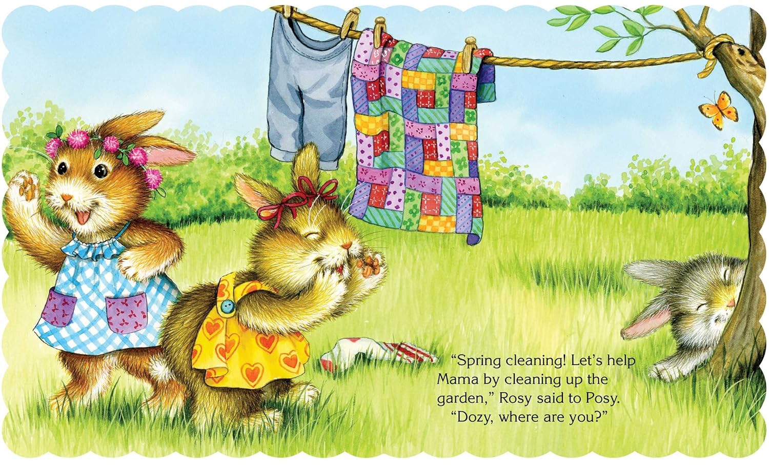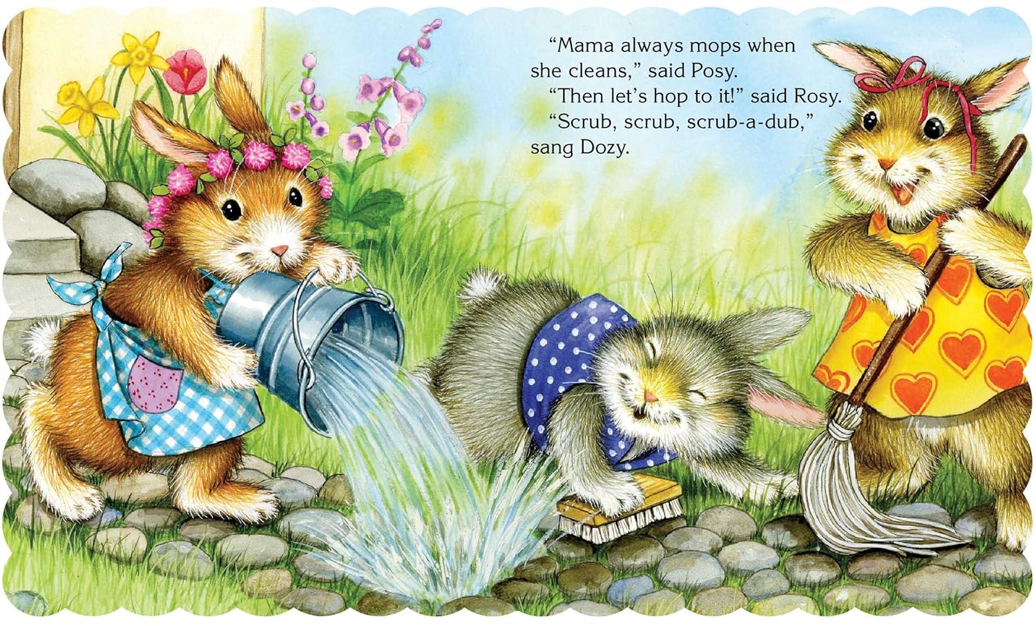 When Mama says it's time for a good spring cleaning, Rosy, Posy, and Dozy decide to help out! Young children will enjoy following along as the cute little bunnies hang the wash, sweep the garden path, and end the day with a bath and sweet snack.
