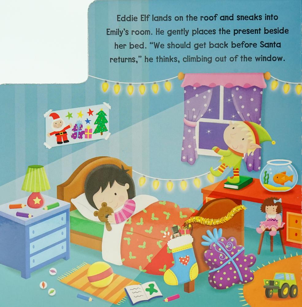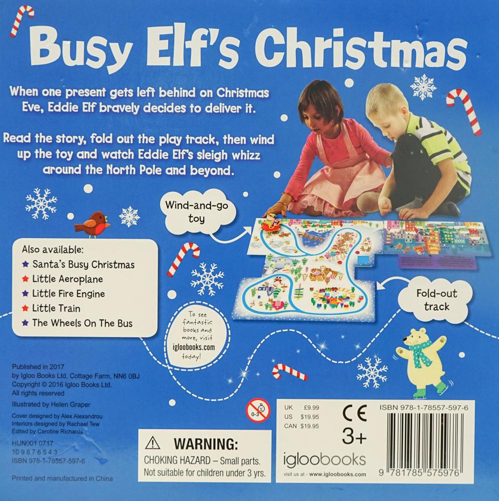 When one present gets left behind on Christmas Eve, Eddie Elf bravely decides to deliver it. Read the story, fold out the play track, then wind up the toy and watch Eddie Elf's sleigh whizz around the North Pole and beyond.
