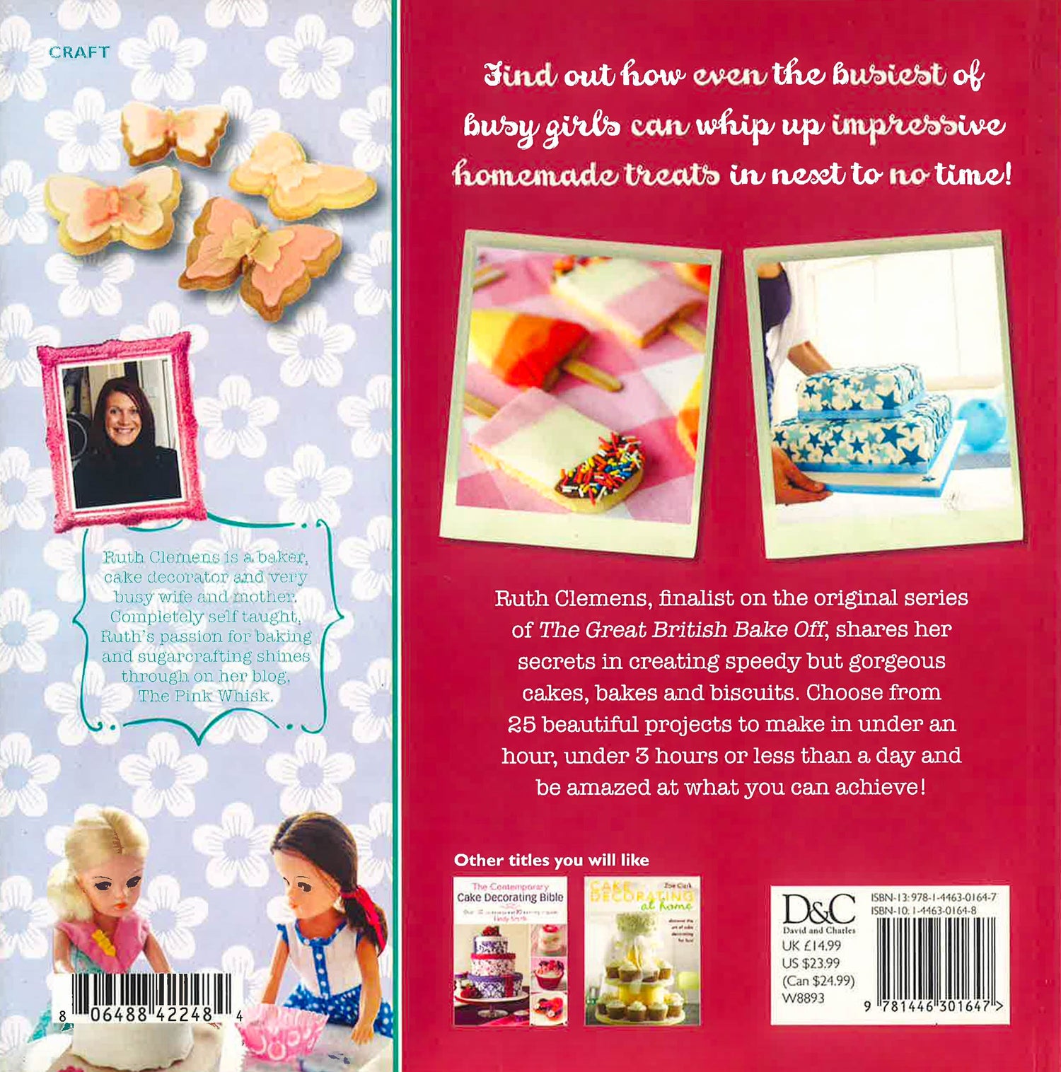 Find out how even the busiest of busy girls can whip up impressive homemade treats in next to no time! Ruth Clemens, finalist on the original series of The Great British Bake Off, shares her secrets in creating quick but gorgeous cakes, bakes and biscuits. Choose from 25 beautiful projects to make in under an hour, in an afternoon, or over a weekend and be amazed at what you can achieve! This book is all about cake decorating without the fuss, the palaver and sometimes the tears too! The projects are split into three sections. The Evening Whip-Ups (one-hour projects) are perfect when you have very little time, and are easy to throw together one evening after work. The Half-Day Delights (two-hour projects) are for when you have an afternoon to spare. Finally, the Weekend Wonders (three- to four-hour projects) are for when you've got a bit more time available in your schedule! In cake-decorating terms, all of the above are tiny amounts of time - large, intricate projects take professional cake decorator's days, if not weeks, of work. We busy girls don't have the time or the patience to create those kinds of works of art but this book contains stunning projects that can be achieved in next to no time. In addition to the projects, Ruth talks you through all the equipment and ingredients you need, shows you how to line a cake tin, gives her tried-and-tested recipes for fruit cake, sponge cake and chocolate cake, as well as cupcake recipes, cookie recipes and frosting recipes. She shows you how to pipe with royal icing and buttercream piping techniques, and how to cover a cake with marzipan, how to cover cakes and boards with sugarpaste, how to trim a cake board with ribbon, how to colour fondant to your desired shade, how to stack cakes using dowels, and some wonderful creative embellishment techniques. The Busy Girl's Guide to Cake Decorating - the perfect place to start your foray into the world of cakes.