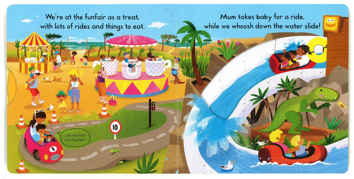 Summer's here, and the days are full of fun and sunshine in Busy Holiday. Pack the car, splash in the sea, whoosh down a water slide then pitch a tent just in time for bed! Little ones will love playing with this bright and colourful board book with gentle rhyming text and wonderful illustrations by Sebastien Braun, which is part of the popular Busy Book series.Also available in this tactile series: Busy Beach, Busy Garden, and Busy Airport.