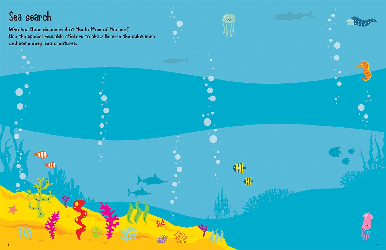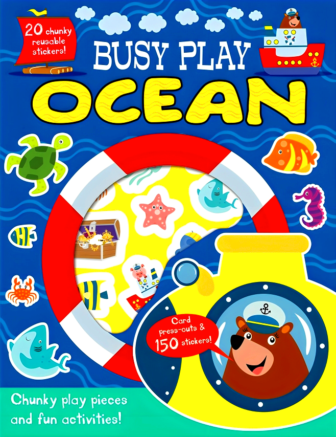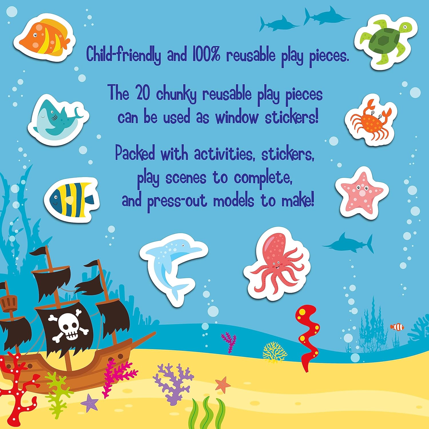 A sticker activity book bursting with under-the-sea activities, stickers, press-outs, play scenes and 20 child-friendly reusable play pieces that can be used as window stickers!Have fun in the ocean with this activity book that's packed with activities, reusable play pieces, fun press-out models to make, and four busy under-the-sea play scenes to complete with the 150 stickers.The 20 chunky ocean-themed reusable play pieces are 100% reusable and can be positioned again and again. Use them for fun on your windows to decorate your room!
