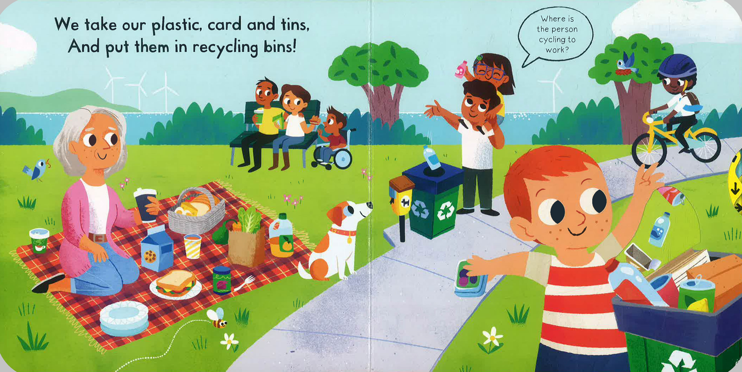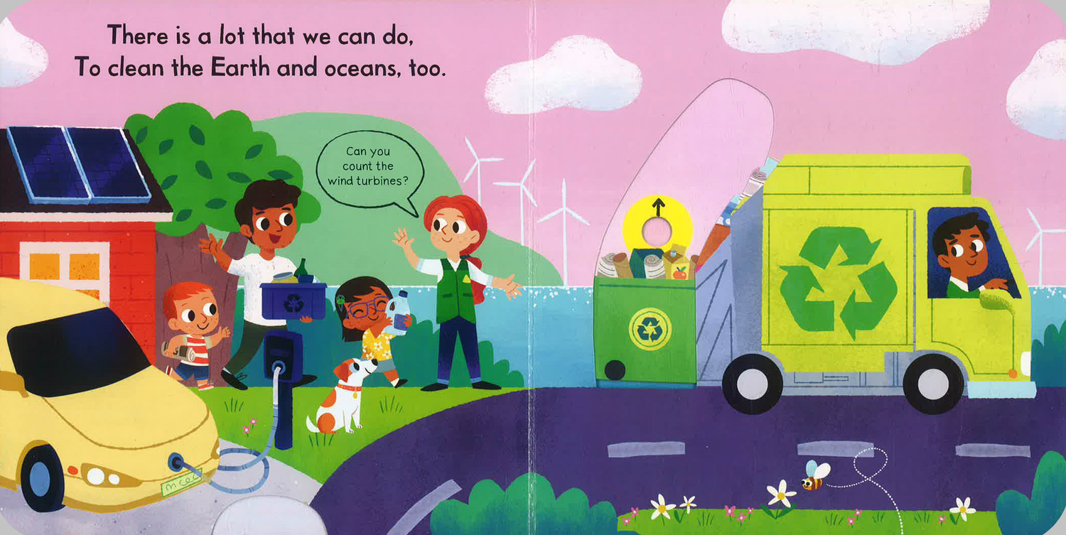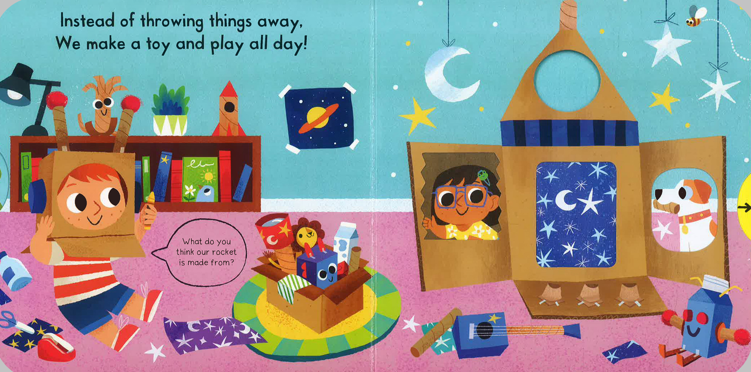 Push, pull and slide the tabs to help clean up the Earth in Busy Recycle! Watch the recycling truck do its work, reuse materials to make a rocket and recycle your waste in this fun book about helping the planet.