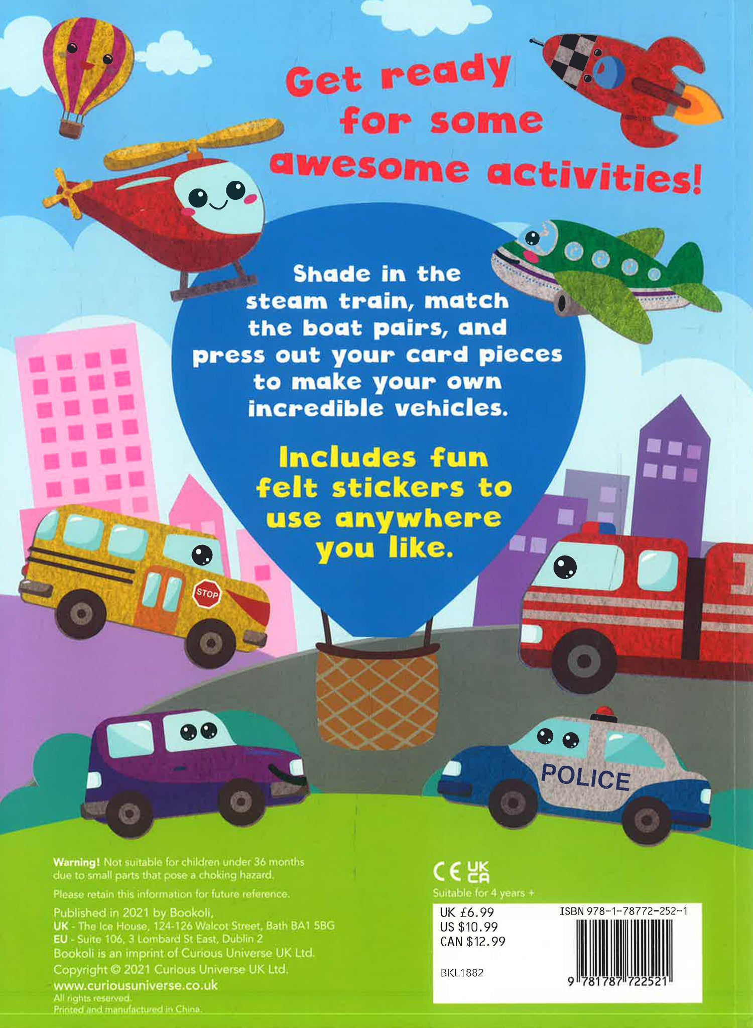 From adorable puppies to chugging steam trains, these fun-packed activity books are filled with cuteness or loud, roaring excitement! Colour, doodle and puzzle your way through the activities, including mazes, dot-to-dots and spot the differences. Then press out the pieces to make your very own baby animals or awesome vehicles. Includes fun felt stickers to use anywhere you like.