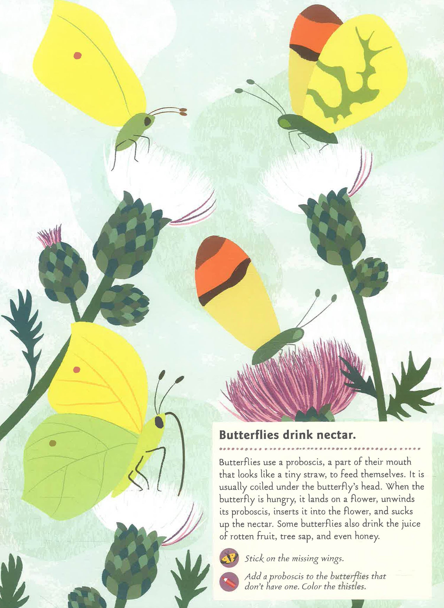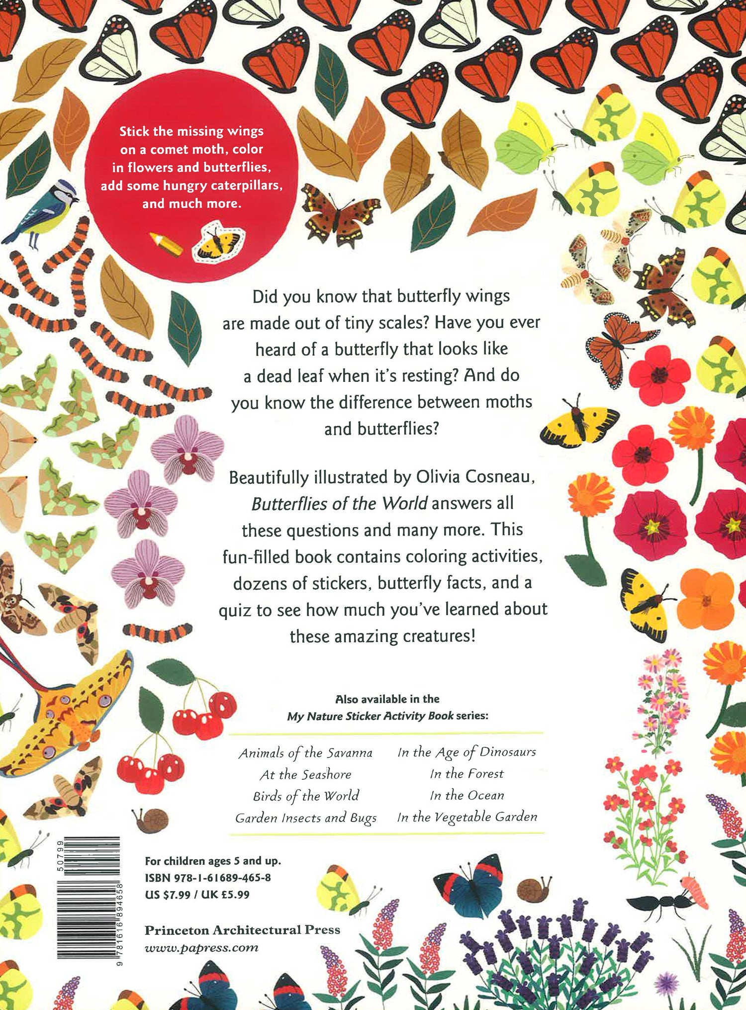 Butterflies of the World introduces different types of butterflies and moths through a range of interactive activities and stickers. This activity book will keep children entertained for hours through fun activities, such as sticking on the missing wing of a comet moth or coloring in the wings of a Large Blue butterfly. In the process children learn how caterpillars turn into butterflies, what they eat, how they trick predators, and other interesting facts. A quiz at the end of the book tests their knowledge.