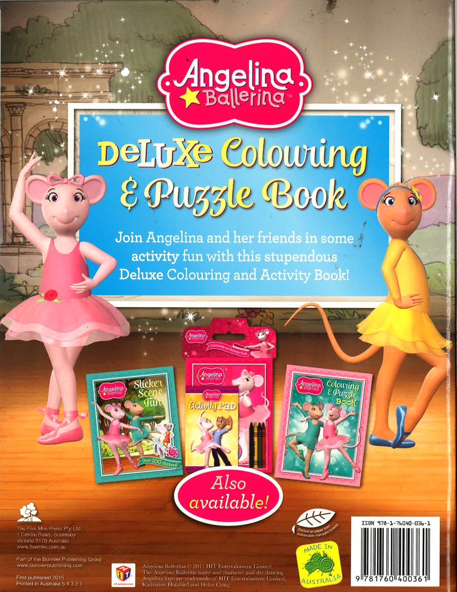 The new Angelina Ballerina The Next Steps follows the now 8-year-old Angelina as she embarks on the next stage in her life at a new school where she experiences new forms of music and dance. Angelina always works hard to reach her goals and learns from her mistakes. As young children share in Angelina's experiences, they're inspired to go after their big dreams, too!Drawing and colouring are important activities for young children to learn to express themselves. Colouring helps kids develop fine motor skills, patience and focus. The activities in this series are pitched at just the right level to stimulate and challenge Angelina Ballerina fans.