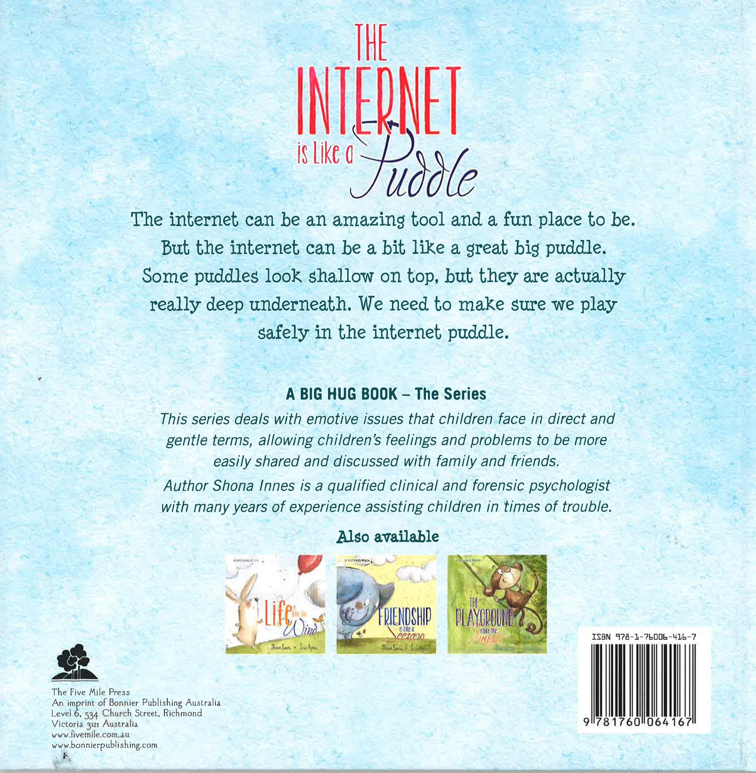 The Big Hug Books series deals with emotive issues that children face in direct and gentle terms, allowing children's feelings and problems to be more easily shared and discussed with family and friends. The Internet is Like a Puddle explores the danger that lurks with unsupervised access to the Internet.