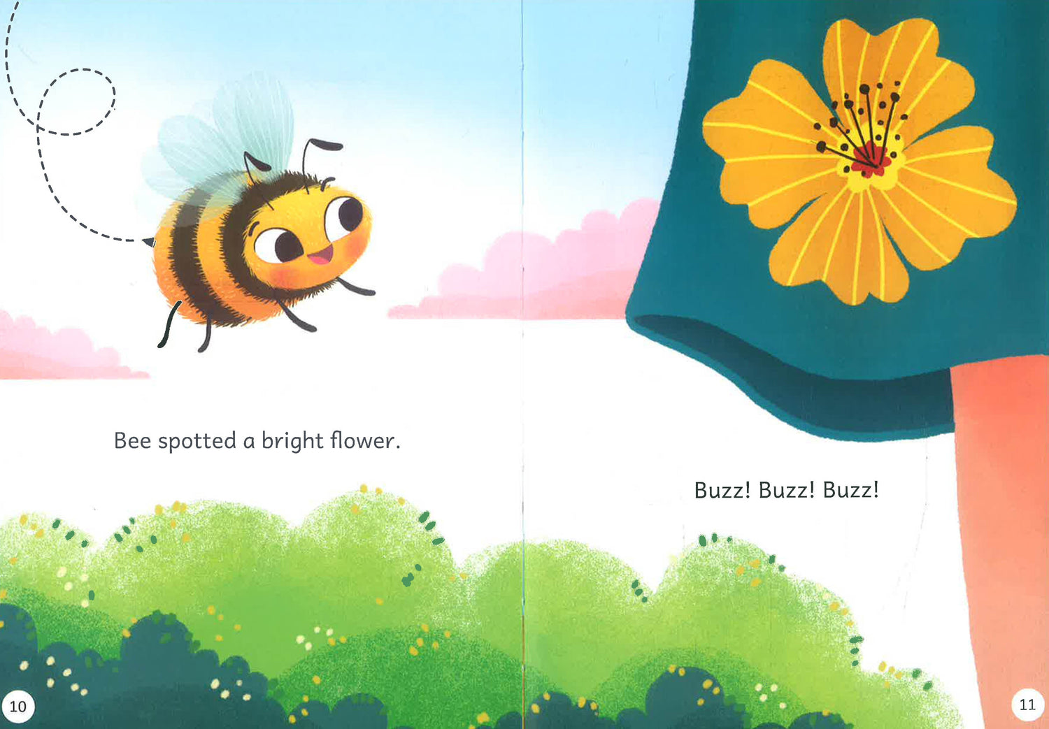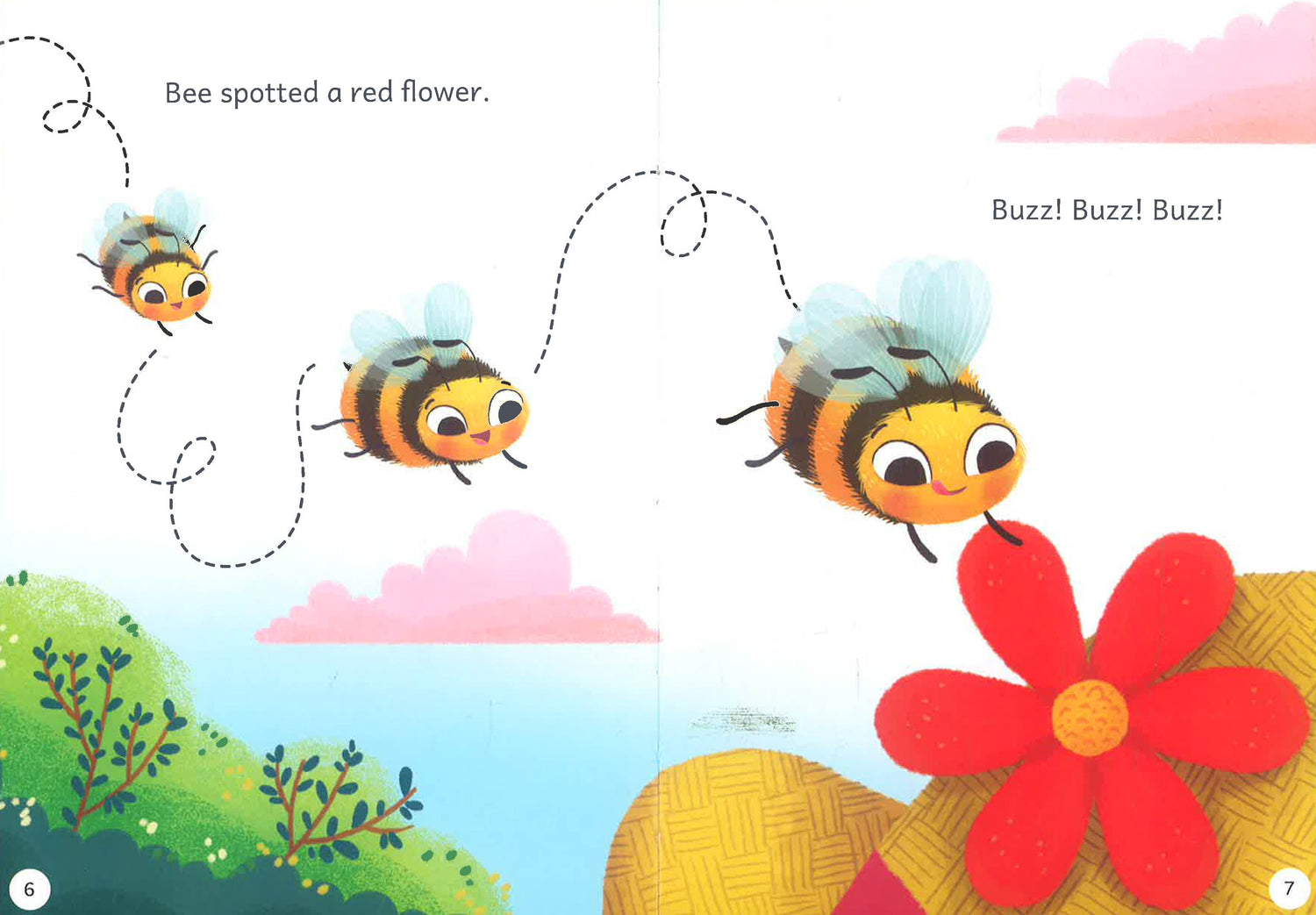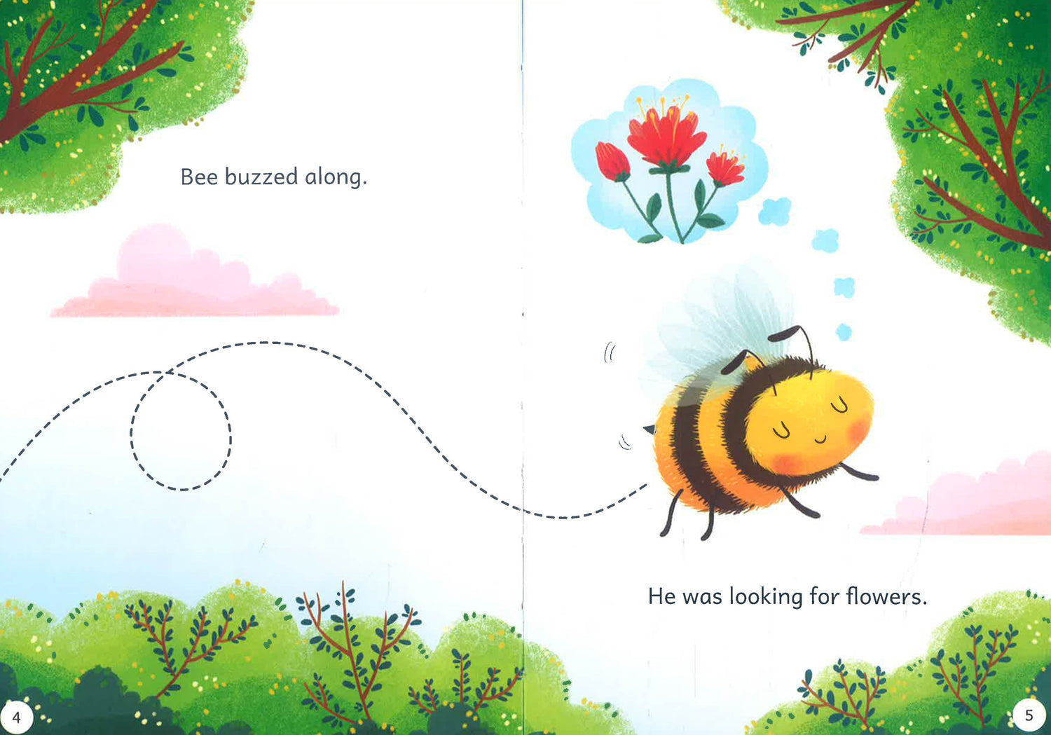 Bee buzzes along, looking for flowers. Will he find any?