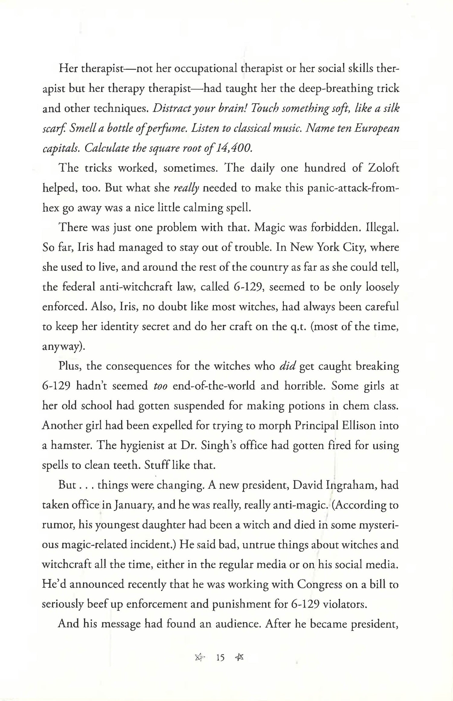 New girl and secret witch Iris just wants to get through her first day of school without a panic attack. The last thing she expects is to be taken in by a coven of three witches: soft-spoken Greta, thoughtful and musical Ridley, and fiery and spirited Binx. They may be the first witches Iris has met IRL, but their coven is not alone in their small northwestern town.
