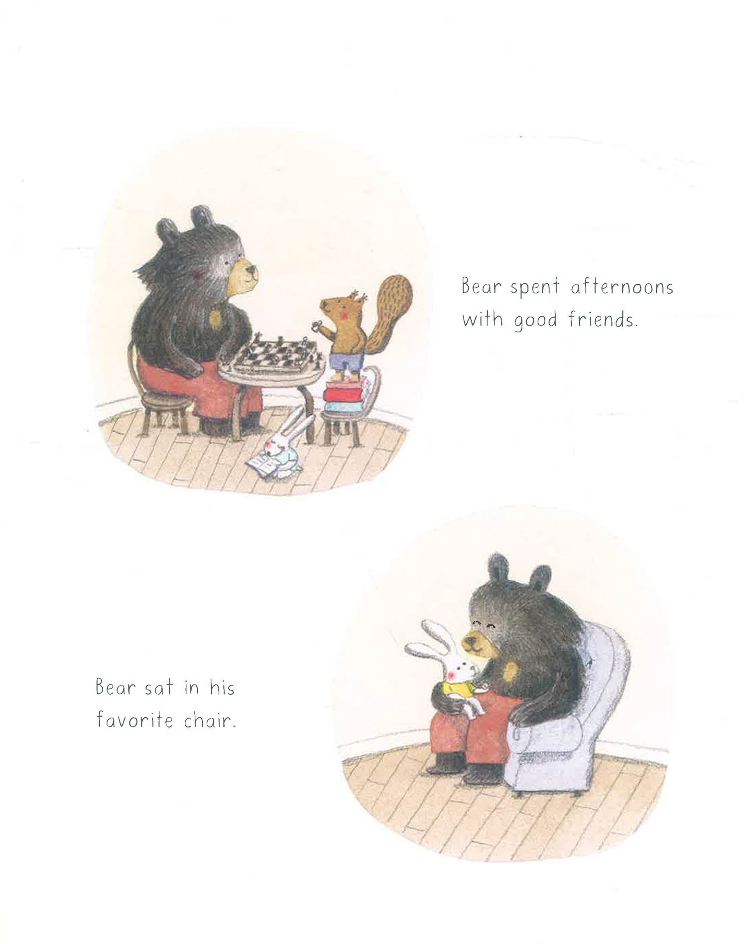 Bear is happy at home, eating strawberry pie and spending time with his friends. But one day, the wind whispers to Bear, calling him to embark on a surprising journey to an unknown place. He isn't sure where he is going, but he knows that everything will turn out okay if he trusts his instincts.