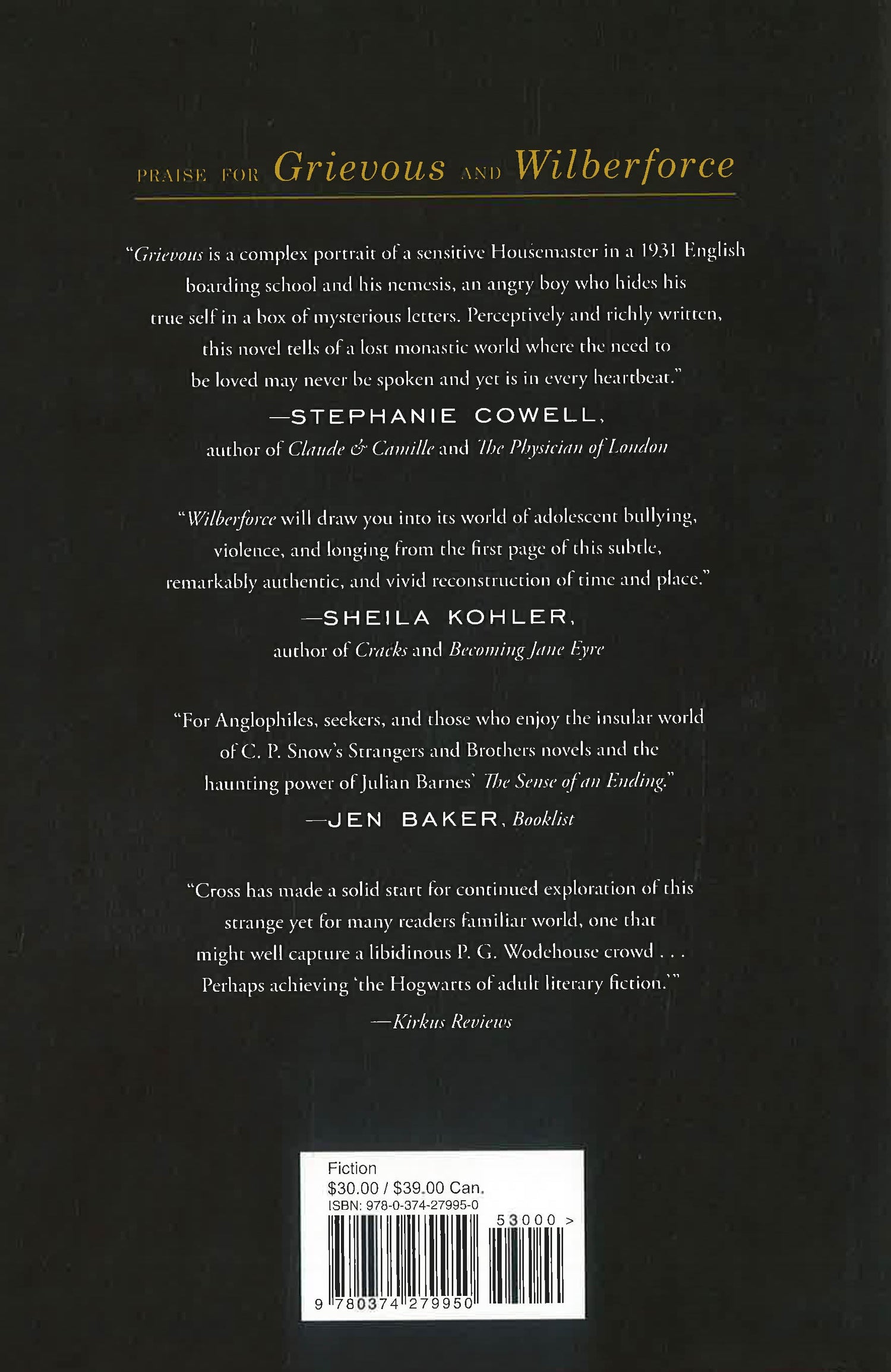 Told from a variety of viewpoints―including that of unhappy Housemaster John Grieves―Grievous takes us deep inside the crucible of St. Stephen’s while retaining a clear-eyed, contemporary sensibility, drawing out the urges and even mercies hidden beneath the school’s strict, unsparing surface. The Academy may live by its own codes, but as with the world around it―a world the characters must ultimately face―it already contains everything necessary to shape its people or tear them apart.