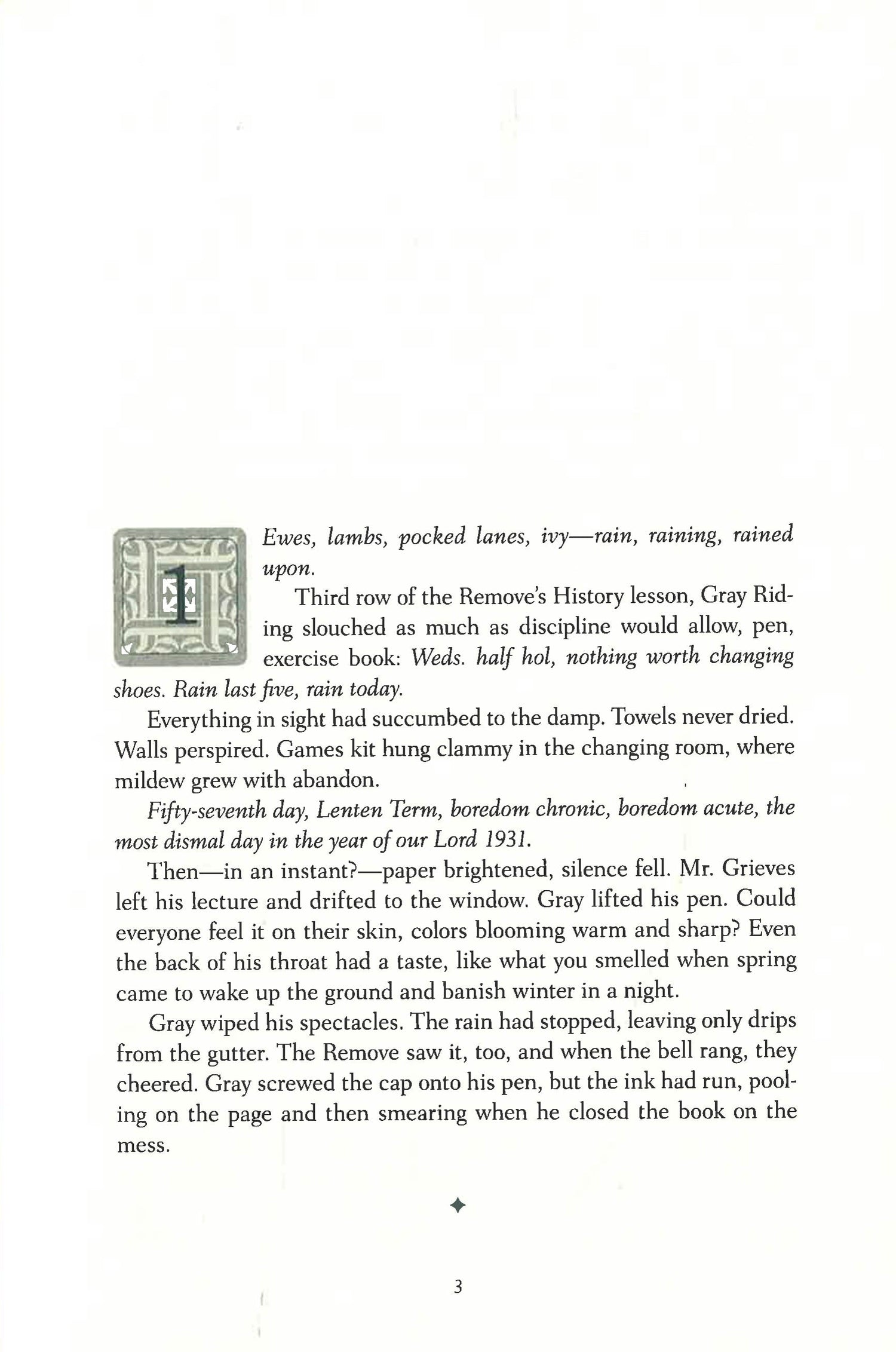St. Stephen’s Academy, Yorkshire, 1931. A world unto itself, populated by boys reveling in life’s first big mistakes and men still learning how to live with the consequences of their own. They live a cloistered life, exotic to modern eyes, founded upon privilege, ruled by byzantine and often unspoken laws, haunted by injuries both casual and calculated. Yet within those austere corridors can be found windows of enchantment, unruly love, and a wild sort of freedom, all vanished, it seems, from our world.