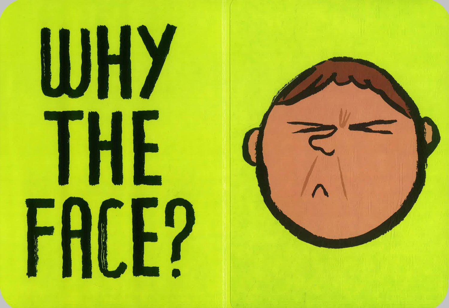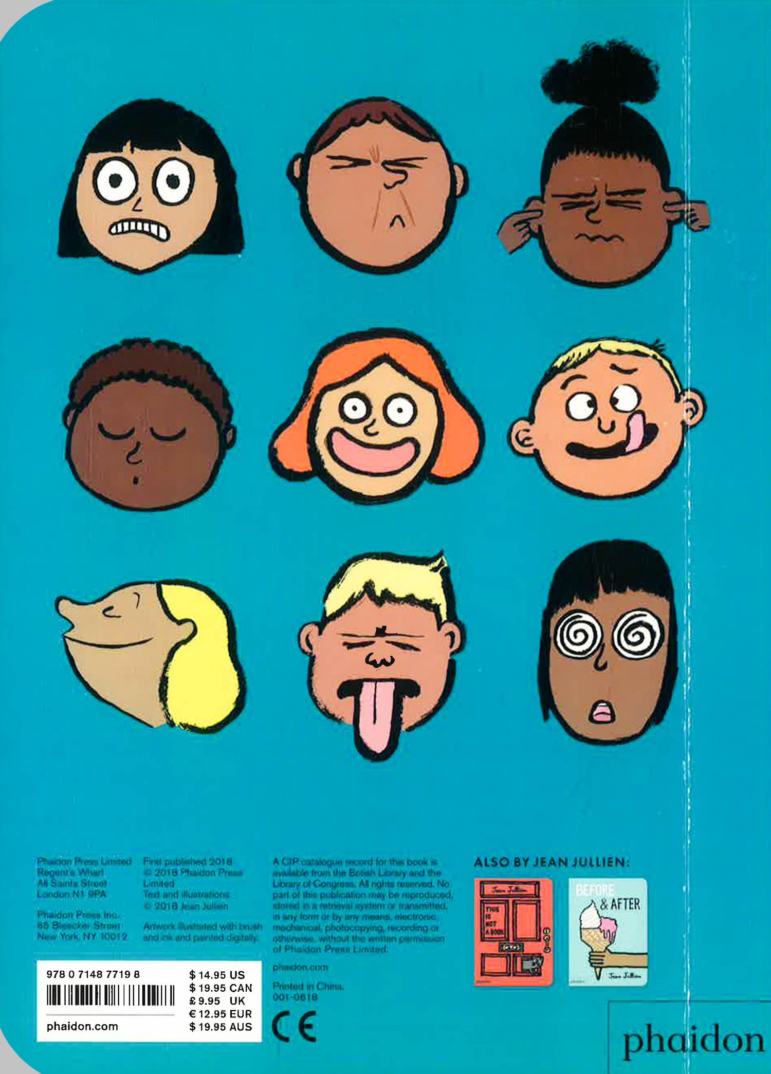 Jean Jullien tickles the funnybone once again with a book of facial overreactions. Faces are presented first, allowing the reader to wager predictions of what may have prompted such an expression, before the dramatic answer is revealed. Why the face? reads the text alongside an agitated boy with eyes and nose scrunched up. Pick up the full-page flap to reveal a whole mess of smelly items, from stinky socks to an oozing trash can, and the text, Whoa, that stinks. Jullien masterfully provides enough clues for the reader to piece together the narrative, including both predictable and surprising scenarios. Based on young children's natural fascination with faces, this book encourages readers to practice empathy and build emotional intelligence, with cleverly simplified and humorously satisfying vignettes. A brilliant addition to Phaidon's growing Jean Jullien board book library.