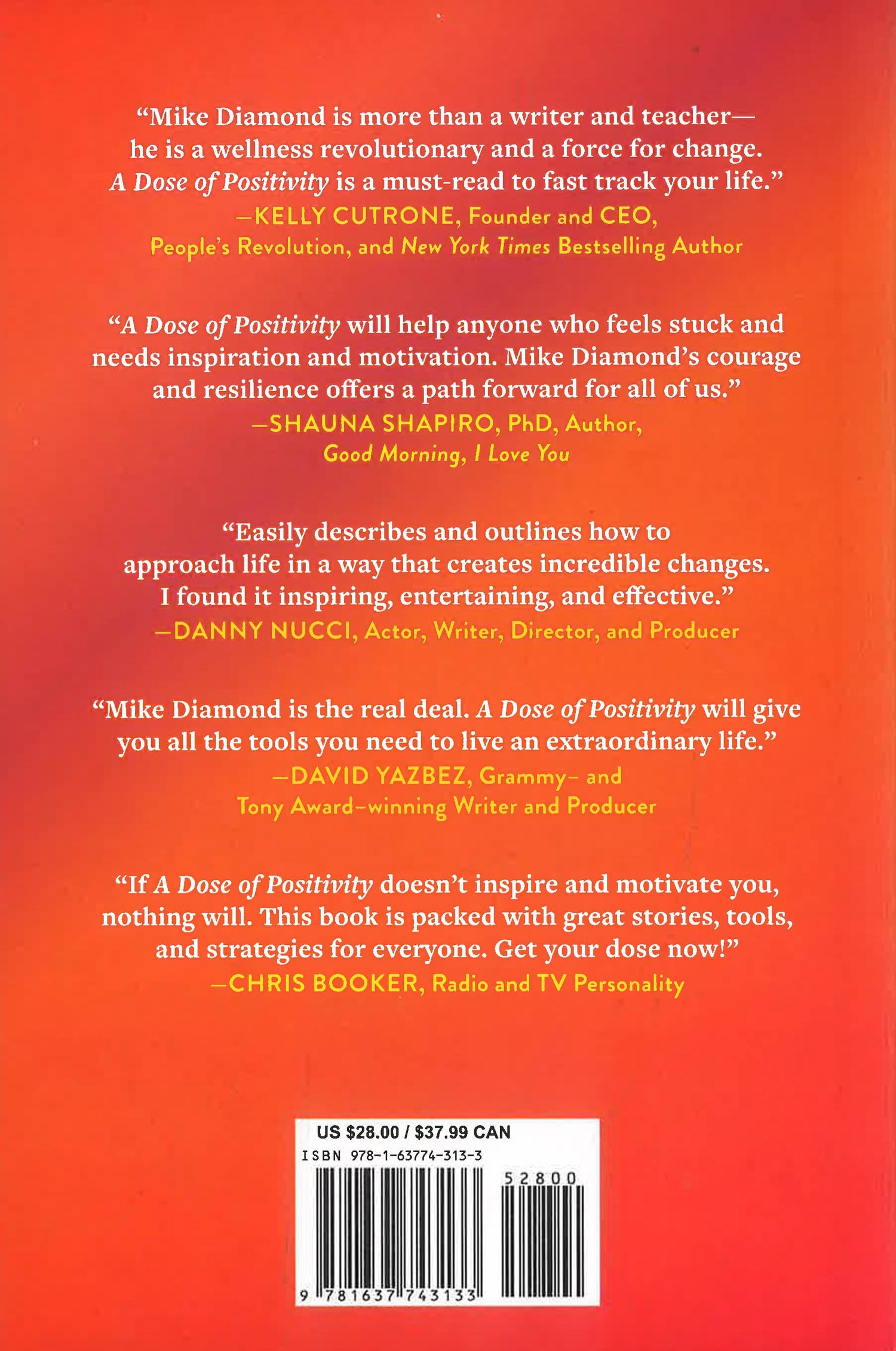 In A Dose of Positivity, Mike shares not only his own incredible stories of overcoming hardship, but also reveals his personally tested techniques for staying grounded, finding success, and creating positive change. This book provides concrete tips on how to lean on and trust your Source—the spiritual energy and intuition within you—to maintain the flexible attitude necessary for your success.
