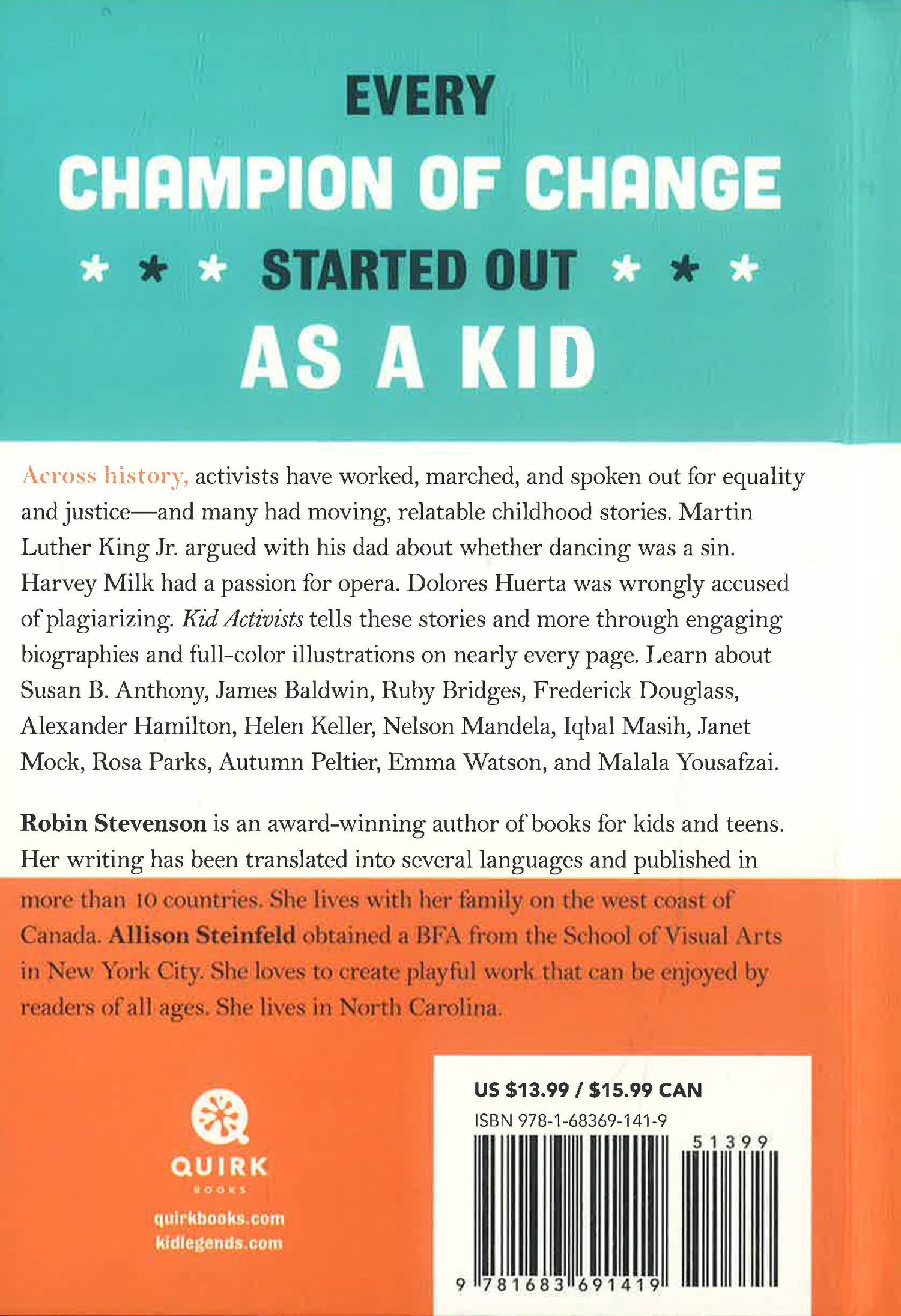 Every activist started out as a kid-and in some cases, were kids when they began their activism. Before they became champions of African-American, women s, LGBTQ, disablity, education, labor, and civil rights, the world s most celebrated activists had regular-kid problems, just like you. Kid Activists tells the stories of a diverse and inclusive group-including Frederick Douglass, Susan B. Anthony, Harvey Milk, Dolores Huerta, Rosa Parks, Martin Luther King Jr., James Baldwin, Nelson Mandela, Emma Watson, Janet Mock, Helen Keller, Alexander Hamilton, Ruby Bridges, Iqbal Masih, Malala Yousafzai, and Autumn Peltier-through kid-friendly text and full-color cartoon illustrations on nearly every page.