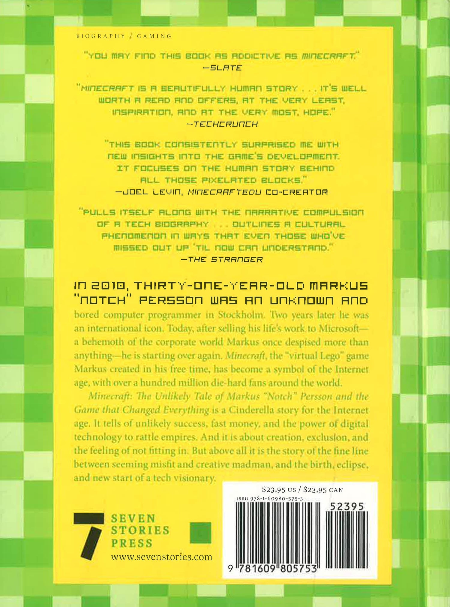 Minecraft: The Unlikely Tale of Markus "Notch" Persson and the Game that Changed Everything is a Cinderella story for the Internet age―improbable success, fast money, and the power of digital technology to shake up a rock-solid industry. It's a story about being lost and finding your way, of breaking the rules and swimming against the current. It's about how the indie gaming scene rattled the foundations of corporate empires. But, above all, this is the story of how a creative genius chased down a crazy dream: the evolution of a shy amateur programmer into a video game god.
