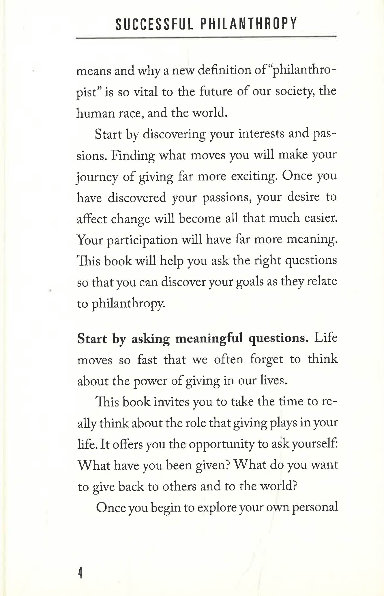 Though philanthropy is a big word, it can be practiced in small ways anywhere, and anyone can become a part of building lasting change. Successful Philanthropy discusses the importance of teaching the next generation the value of giving in schools and at home to improve our community, our country, and our world.