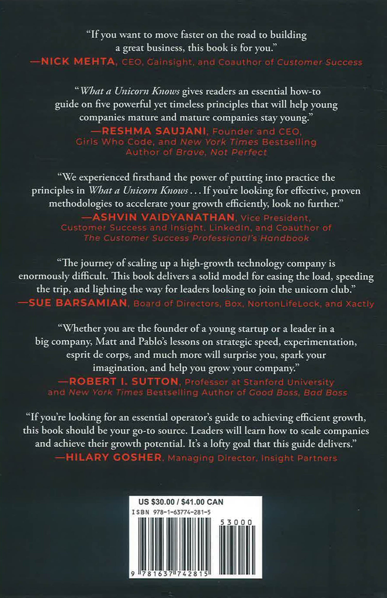 Why do some young companies become unicorns, while others don’t? What a Unicorn Knows is a playbook that offers a field-tested approach to delivering superior customer value and reaching unicorn status by removing the potential inhibitors to organizational scale and speed.