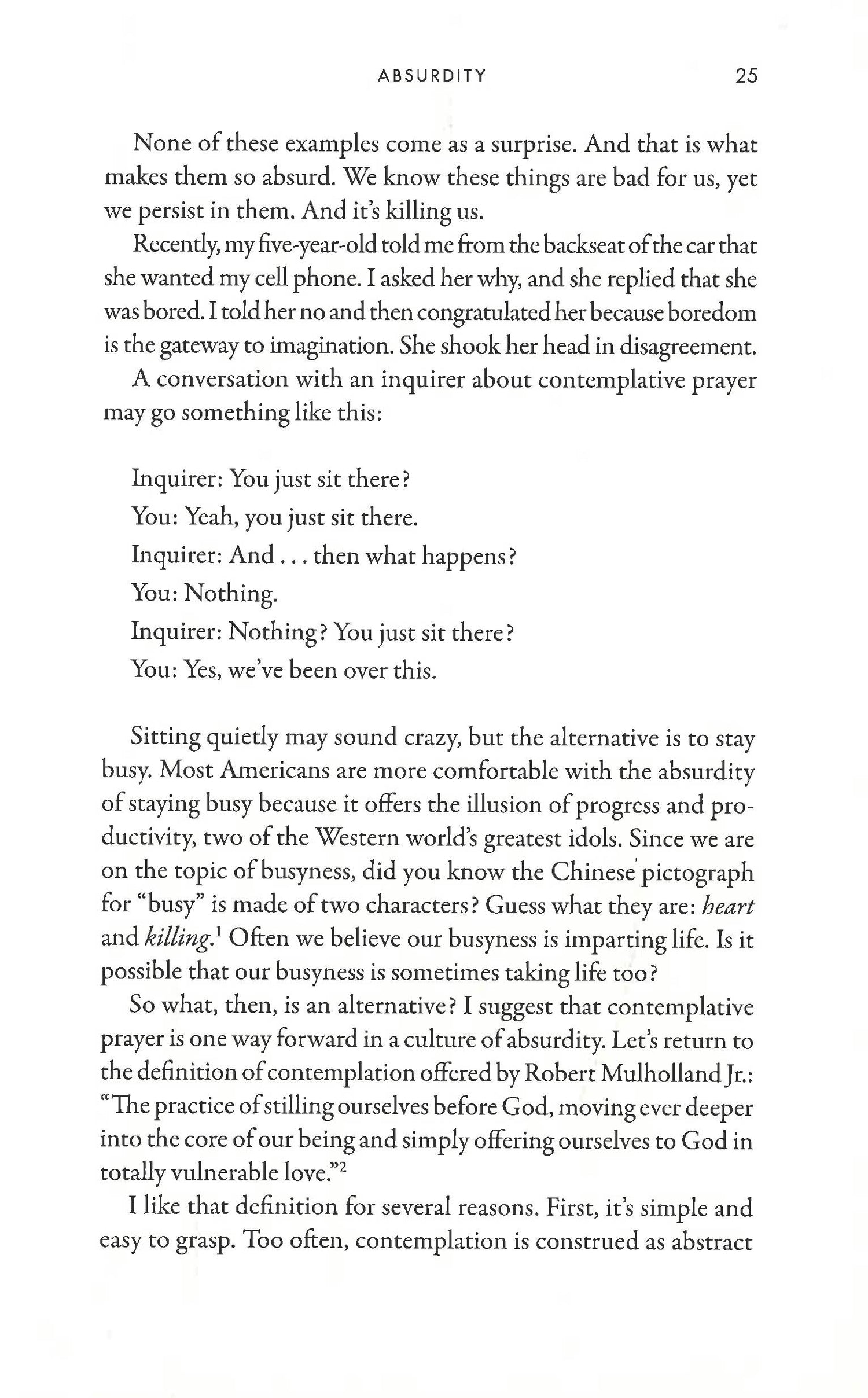 Readers will emerge, centered in Christ, well on their way to this goal: slow down, pay attention, be still, and be loved.