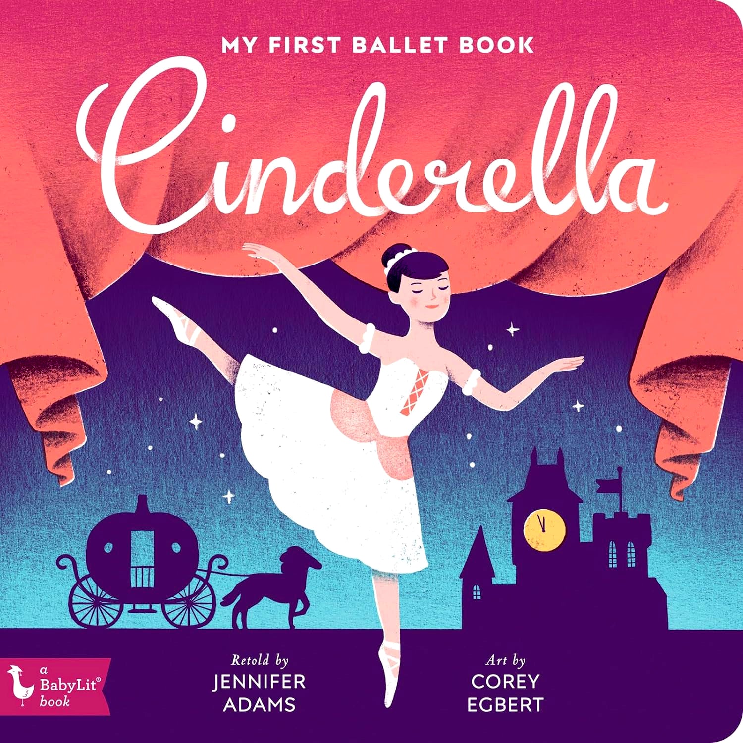 Jennifer Adams' engaging writing and Corey Egbert's delightful illustrations introduce little ones to the classic story ballet of Cinderella while depicting ballet steps and positions. Cinderella's wicked stepfamily, kind fairy godmother, and charming prince dance their way into your heart, encouraging babies to Be Active, Be Creative, and Be Brilliant!