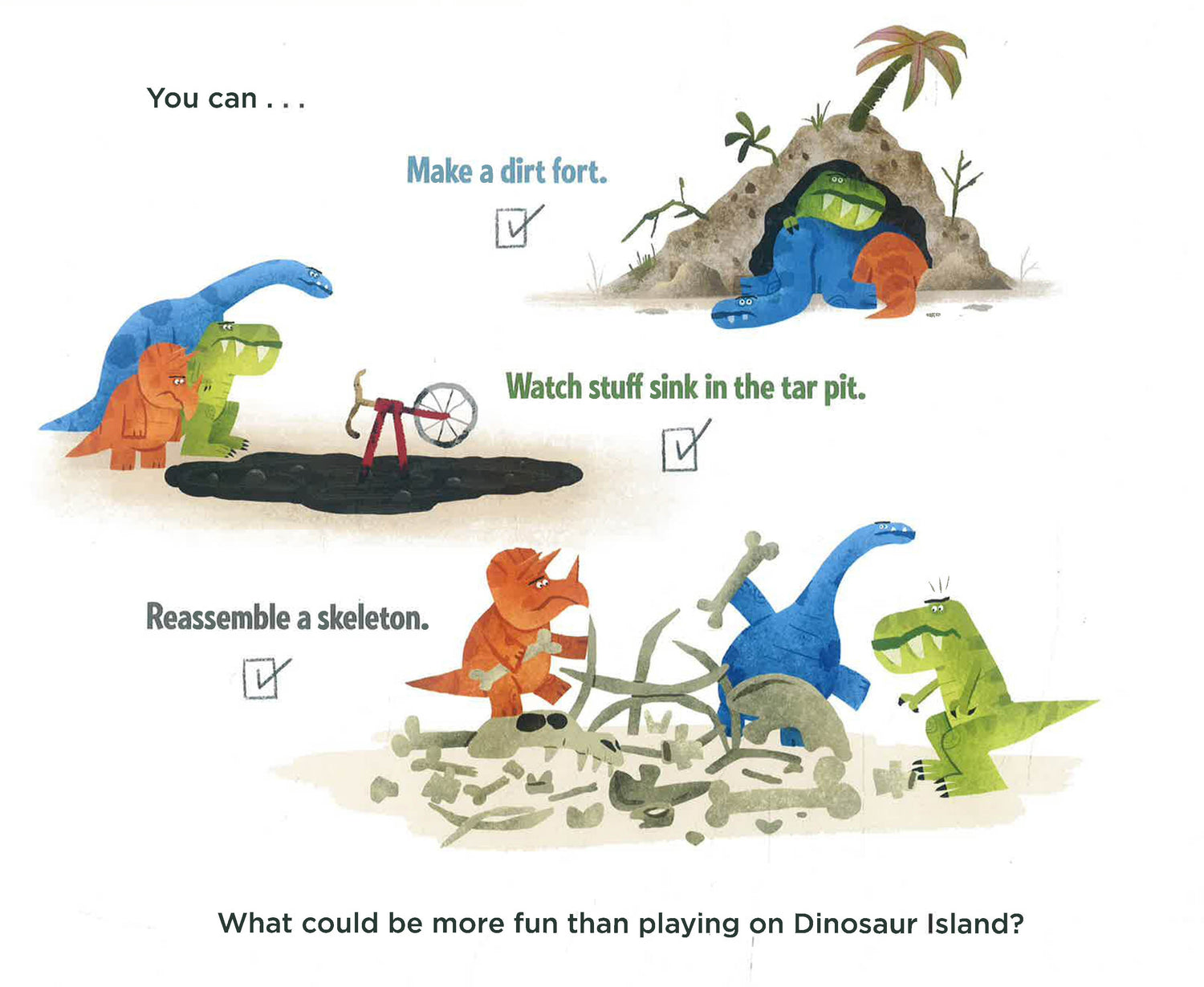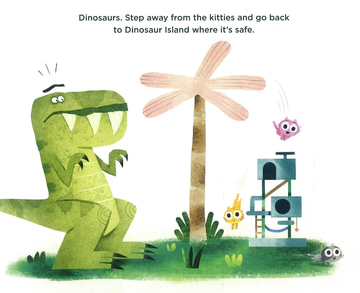 Life on Dinosaur Island is so boring. Who wants to watch stuff sink in tar pits all day? So the dinosaurs are escaping to Kitty Island to play with their new kitty friends, even though the level-headed narrator warns them that it will end in cat-astrophe. After all, the kitties are fearless and feisty! And these dinos? Well, cuddles are more their speed. Now these tiny kitties and hulking dinos need to find some common ground before their playdate and friendship go extinct.