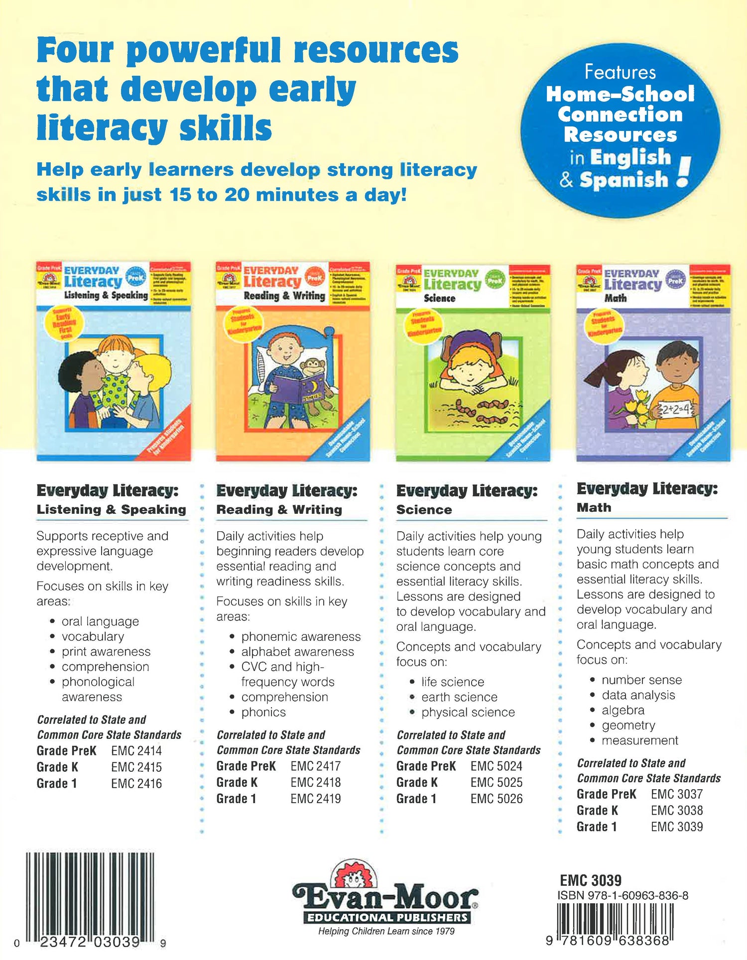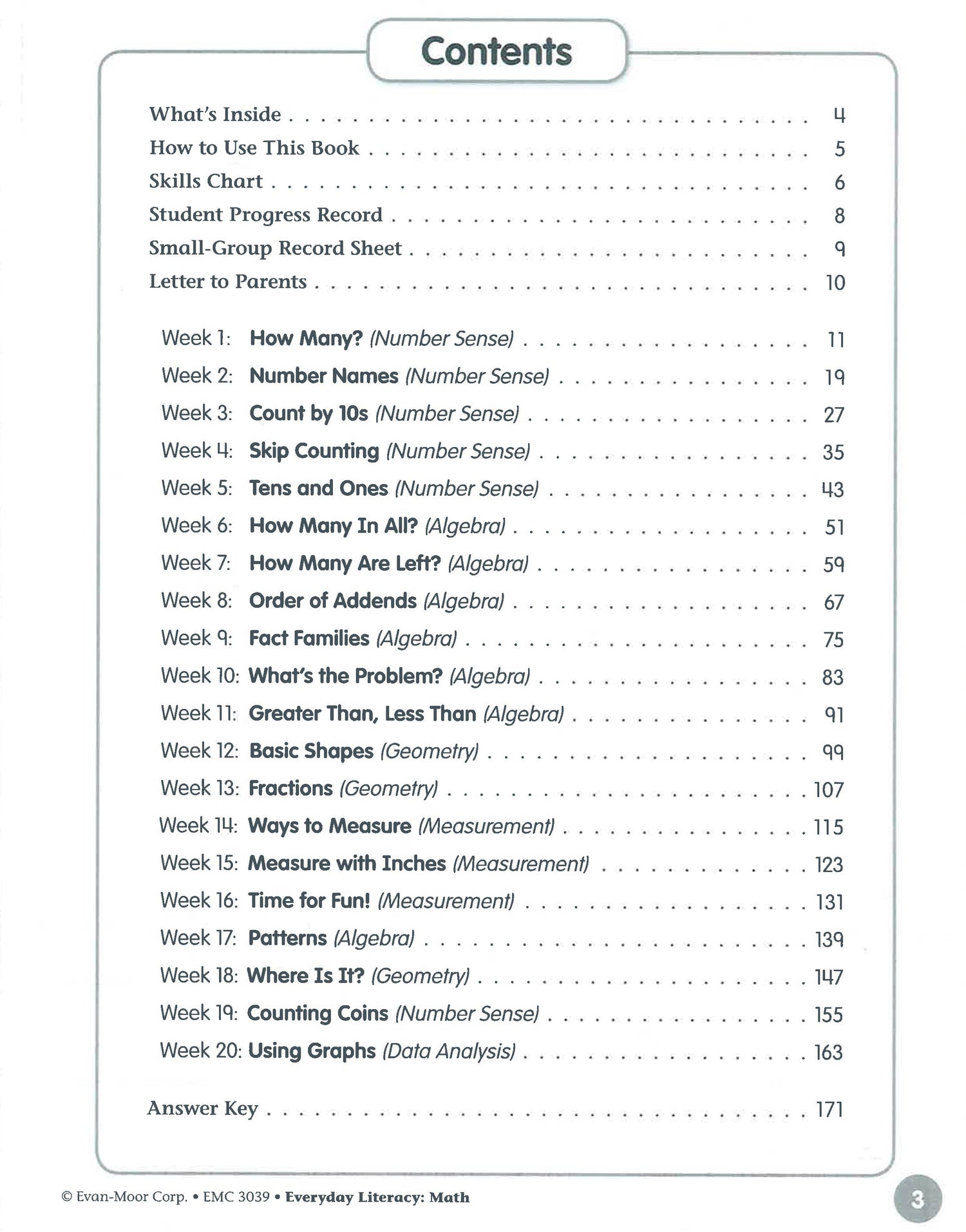 Everyday Literacy: Math provides 20 weeks of math skills that are aligned to state standards and Common Core State Standards. Math and literacy skills covered, include: