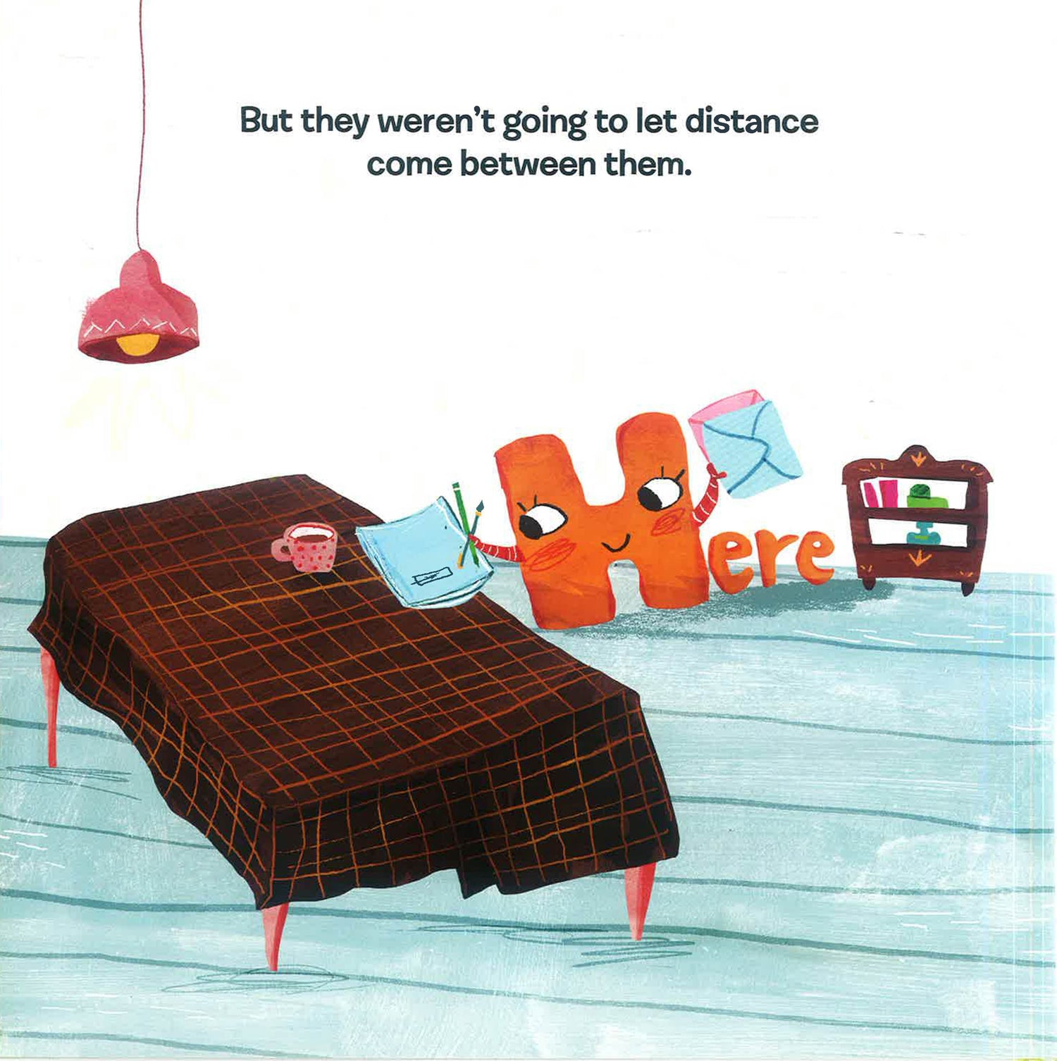 Here and There are so similar they’re practically twins. But they could never play together because Here is always here and There is always there, so they become pen pals and write to each other all the time. One day, There gets an idea that could change the distance between them forever.