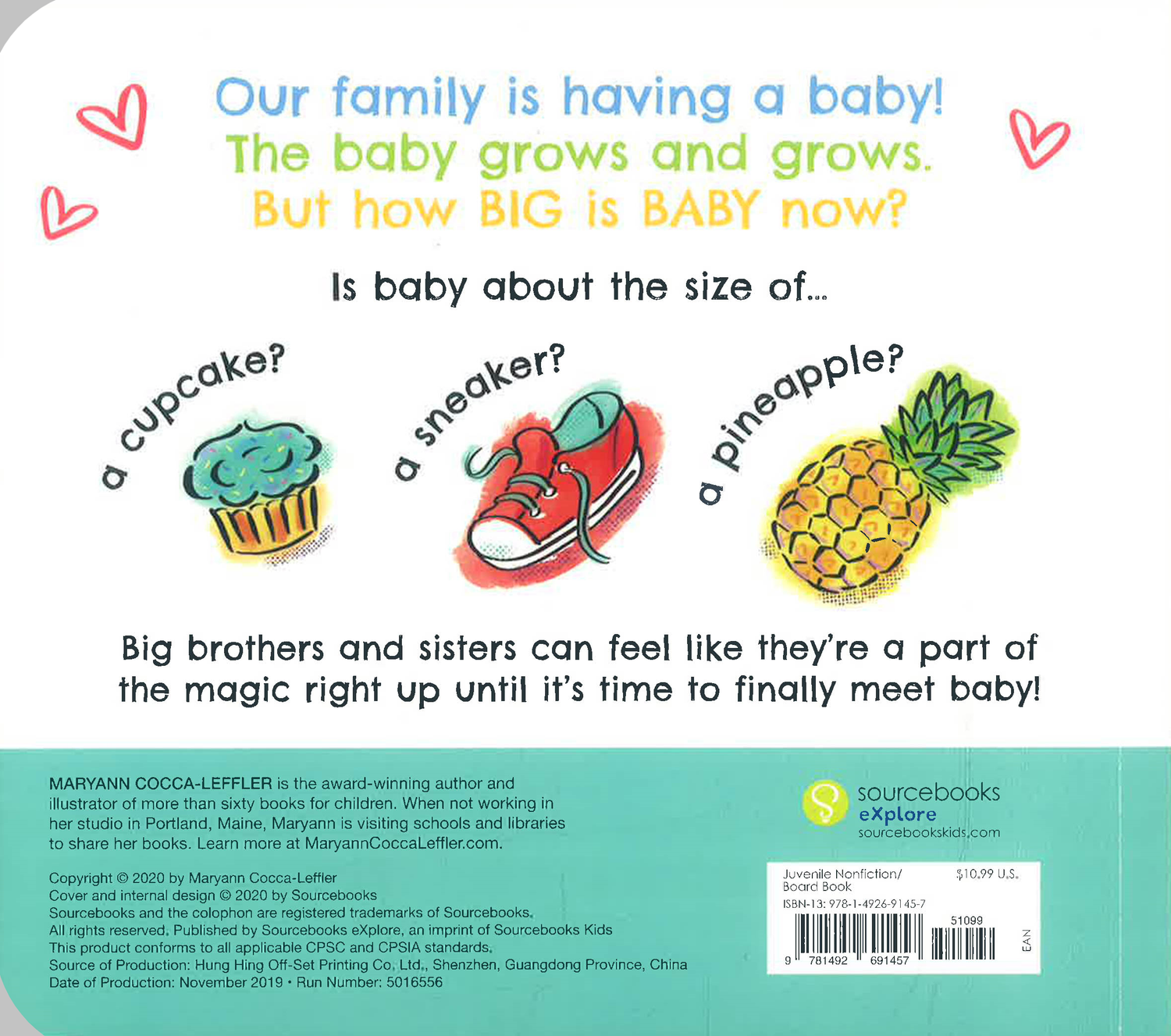 How Big is Baby Now? lets readers compare the growing baby to things kids already relate to and see all around them: from an egg, to a football to a jug of milk. Starting from three months, young children can count along as they anticipate becoming a big brother or sister. They are guaranteed to feel like they're part of the magic until it's time to finally meet the new baby!