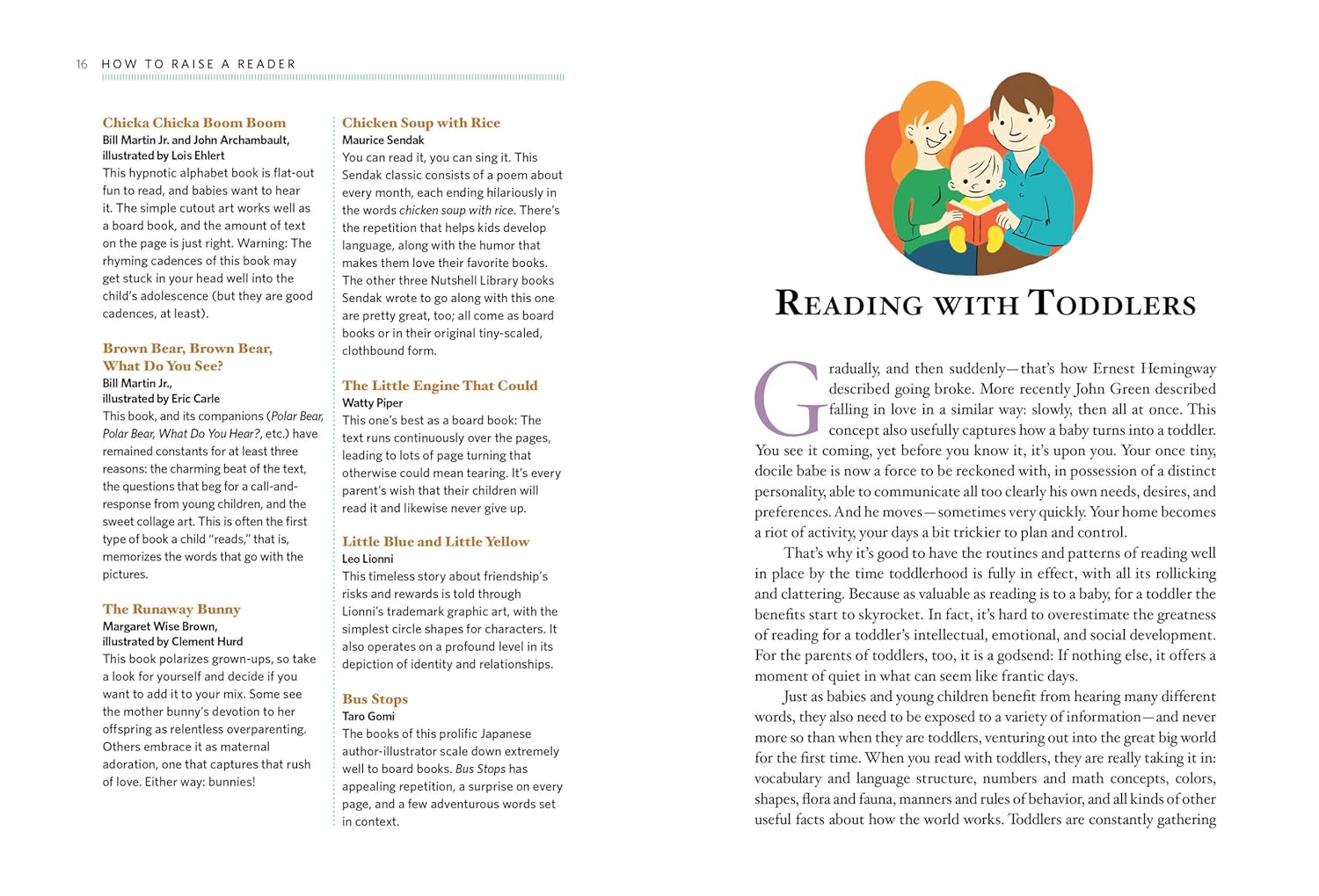 Divided into four sections, from baby through teen, and each illustrated by a different artist, this book offers something useful on every page, whether it’s how to develop rituals around reading or build a family library, or ways to engage a reluctant reader. A fifth section, “More Books to Love: By Theme and Reading Level,” is chockful of expert recommendations. Throughout, the authors debunk common myths, assuage parental fears, and deliver invaluable lessons in a positive and easy-to-act-on way.