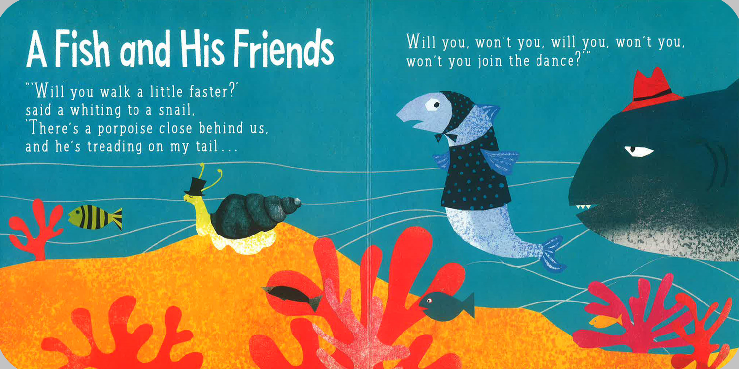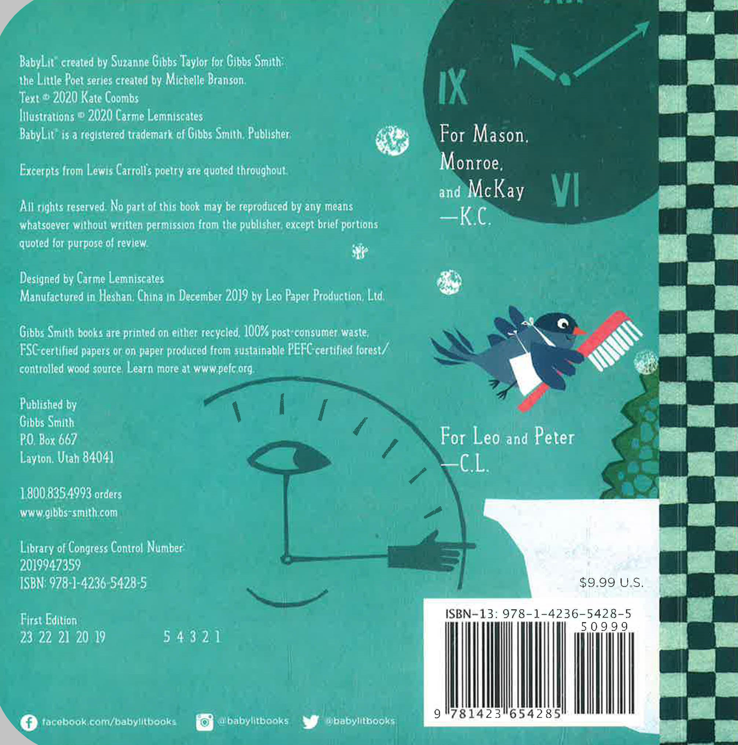 Lewis Carroll, author of Alice’s Adventures in Wonderland, Through the Looking Glass, “Jabberwocky,” and “The Walrus and the Carpenter,” was the king of silly. Kate Coombs’ writing and Carme Lemniscates’ fun and silly art bring Carroll’s delightful nonsense poetry to life for little readers, encouraging them to be silly, Be Creative, and Be Yourself. “Will you, won’t you, will you, won’t you, won’t you join the dance?” The silliest lines have been gathered from Carroll’s vast collection of poetry and stories for this one-of-a-kind board book.