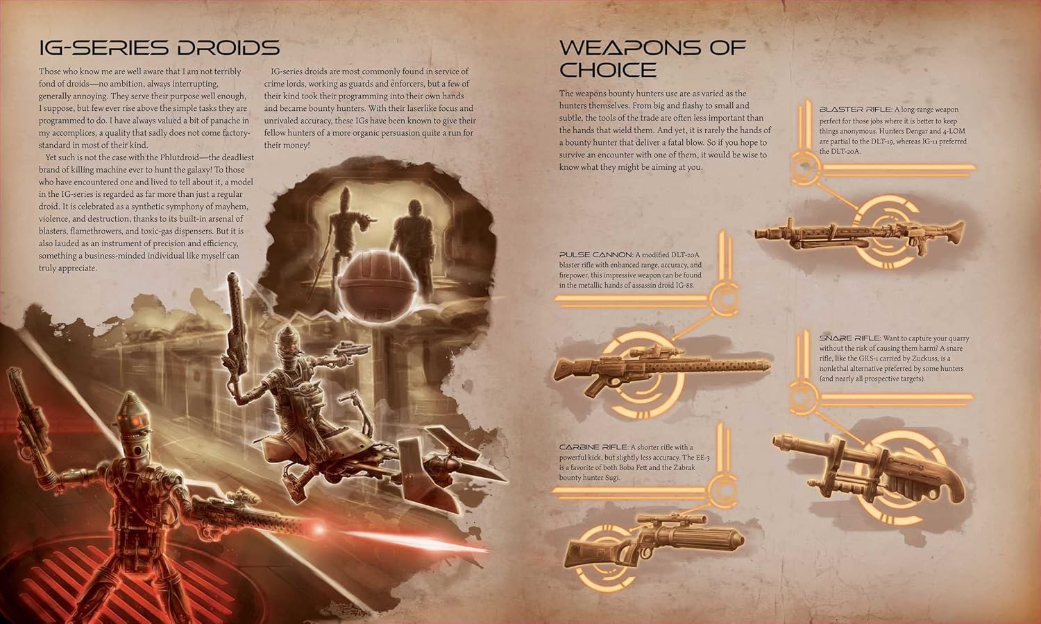 - LEARN ABOUT THE STAR WARS UNDERWORLD: In this in-universe book, Ohnaka recounts fascinating tales about the galaxy's most famed bounty hunters. Hondo also delves into the wider world of bounty hunters, sharing all he knows about notorious starships, dangerous underworld tech, and more.